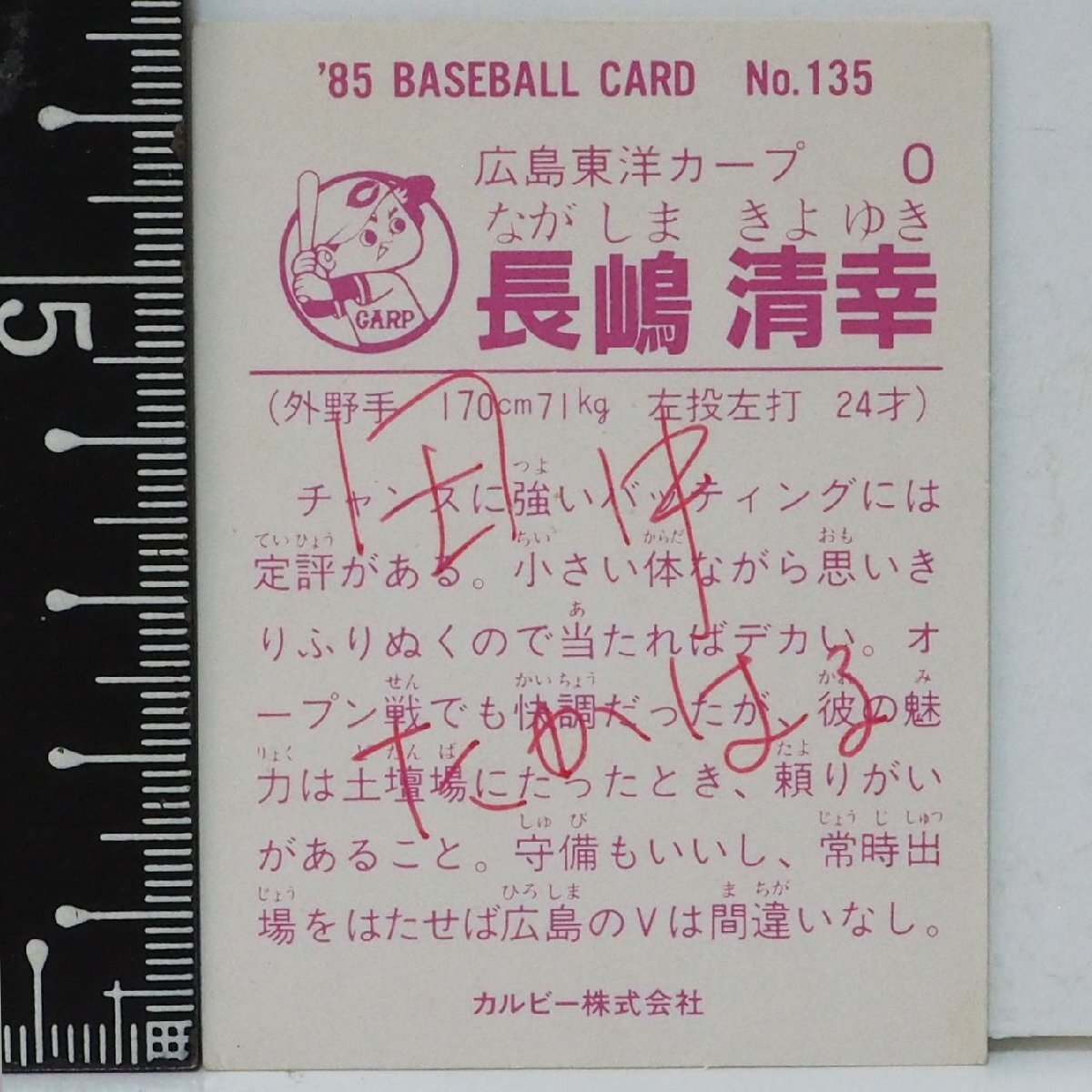 85年 カルビー プロ野球カード No.135【長嶋 清幸 内野手 広島東洋カープ】昭和60年 1985年 当時物 Calbee おまけ 食玩 BASEBALL【中古】
