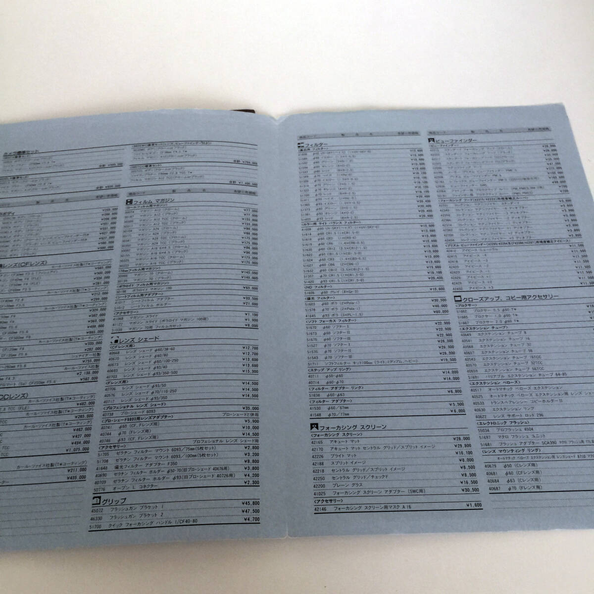 ハッセルブラッドのプロダクト・カタログ(1993年)と、同時期(1992.10)のプライスリストです