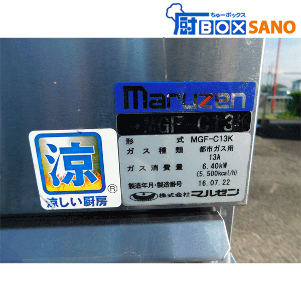 | 名 称 | マルゼン ガスフライヤー MGF-C13K 都市ガス用 13A 中古品 sano6189 |