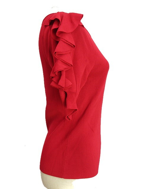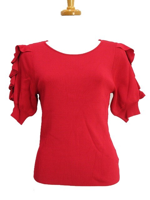 プロポーション ボディドレッシング PROPORTION BODY DRESSING ラッフルスリーブ ニット S レッド 赤 トップス リブ レディース