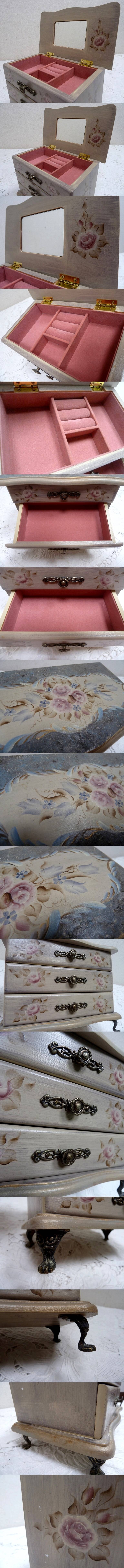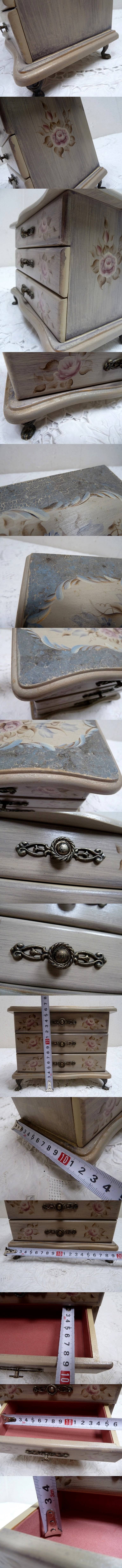 (☆BM)木製 トールペイント(0517-①)ヴィクトリアンレトロ 三段チェスト ジュエリーケース ボックス 宝石箱 収納 複数 アクセサリー 置物