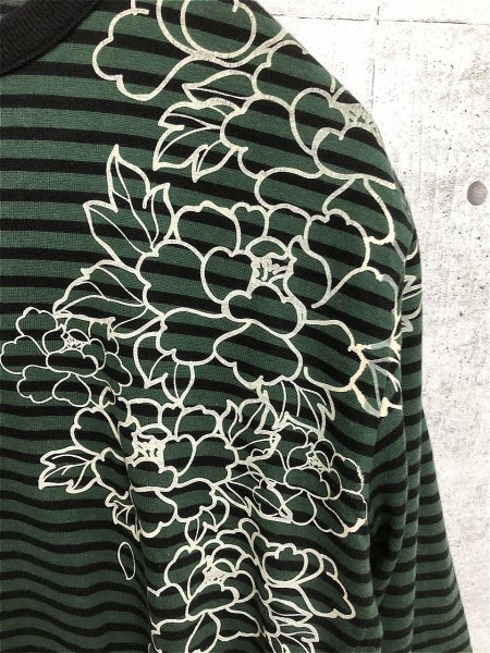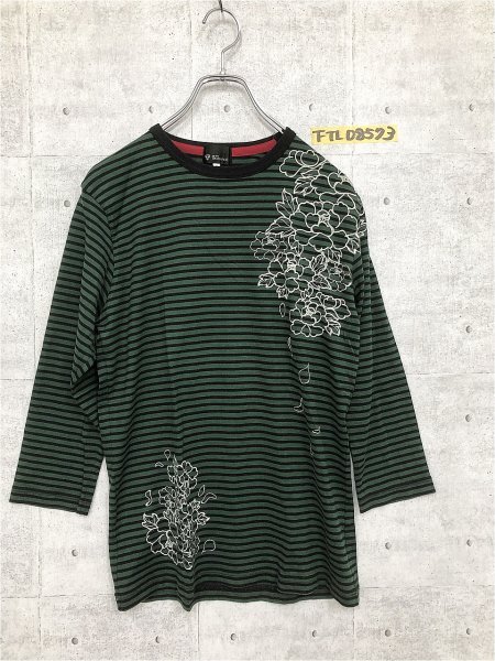 TK MIXPICE タケオキクチ メンズ ボーダー 花柄ワンポイント刺繍 八分袖 ロンT 2 緑黒 です。