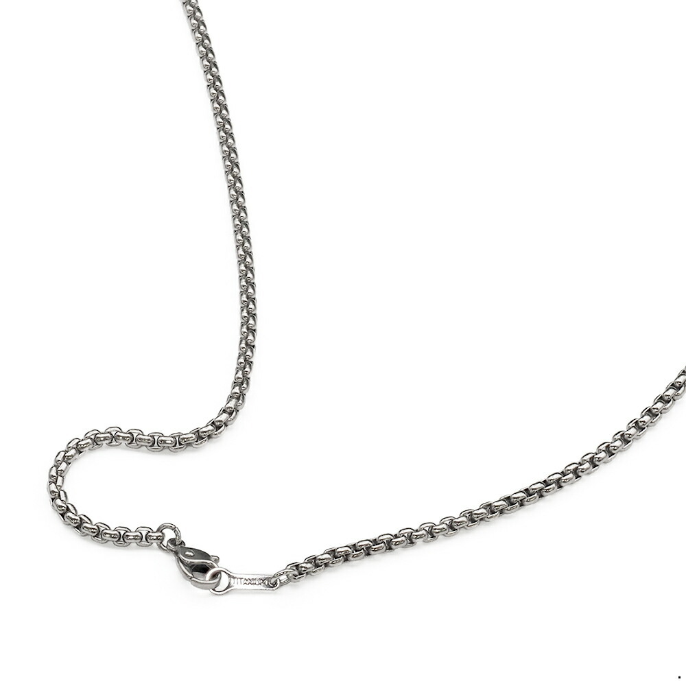 こちらは、表面が丸みを帯びた甲丸状の四角い輪が無数に連なったボリューミーなデザインのチェーンです。 ※当店のチタンチェーンは、溶接部分のチタン純度ですら99.99%以上と限りなく100%に近い値を実現した第一種(JIS規格)純チタン製です。チタンは、身に着けているのを忘れてしまうくらいに軽く、金属アレルギーにとても強い大変優れた素材です。 |