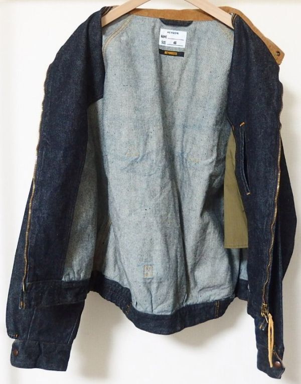 <商品名> NEXUS7 ネクサスセブン x BEYONDEXX ビヨンデックス RRA-NAE-J0D H-21 デニム ハリントン ジャケット 46 <サイズ> 46 <詳しい寸法> 身幅65着丈69裄丈91(単位:㎝) ぐらいです。 <商品状態> 若干の使用感、素材特有の細かなスレや細かな色あせはございますが良好です。 <商品説明> RRA-NAE-J0D H-21 BEYONDEXX 定価60500円 BEYONDEXXデニム生地が使われており、色落ちが楽しみなハリントンジャケットです。