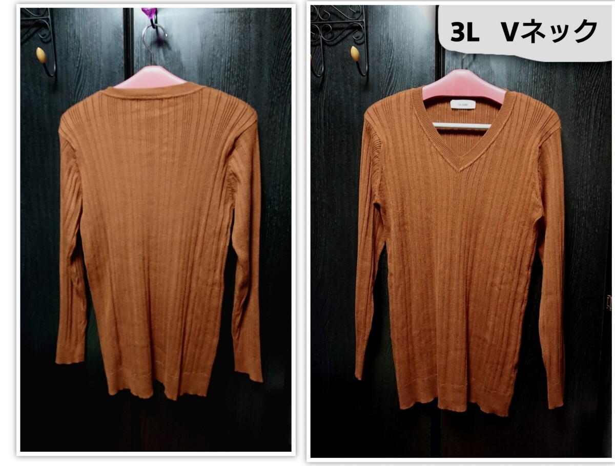 Vネックでスッキリ着こなせ、着丈がやや長いので背中出にくいかと。