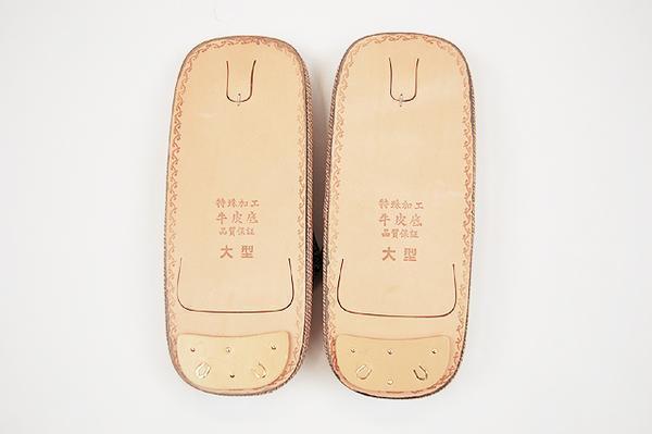 この本格派雪駄の表は天然素材アジロ竹を使用しており、足触りは抜群!また水虫予防にもなります。