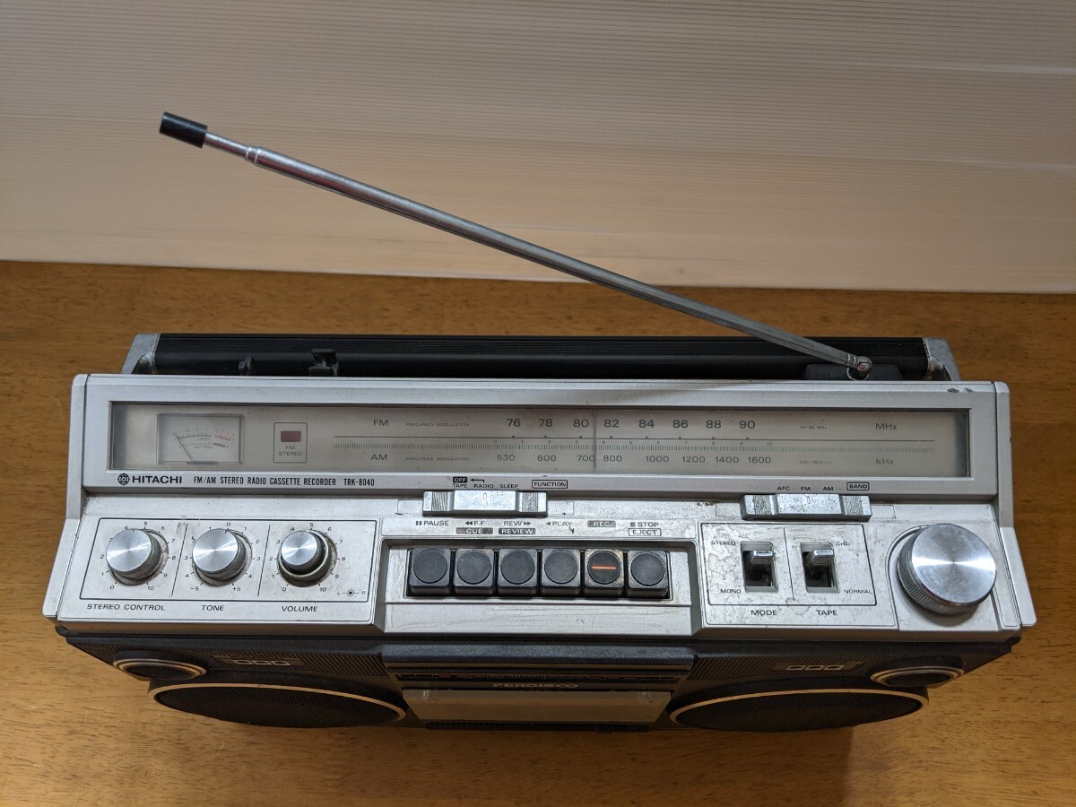 IY1358 HITACHI TRK-8040 昭和レトロ AM&FMラジオ・カセットデッキ/日立 通電のみOK その他詳細動作未確認 現状品 JUNK