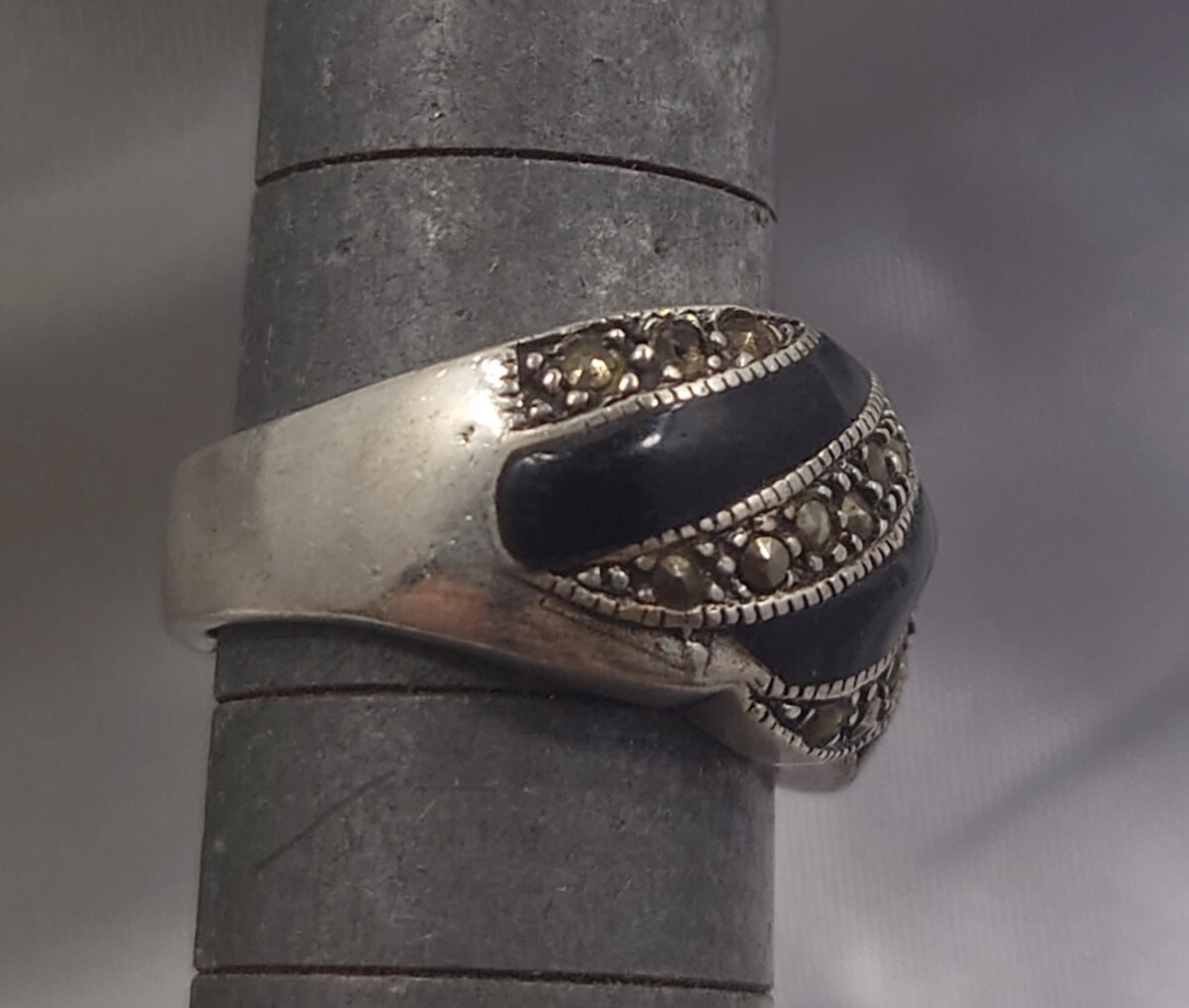 こちらはマーカサイトを使用したアンティーク調シルバーリングとなります。