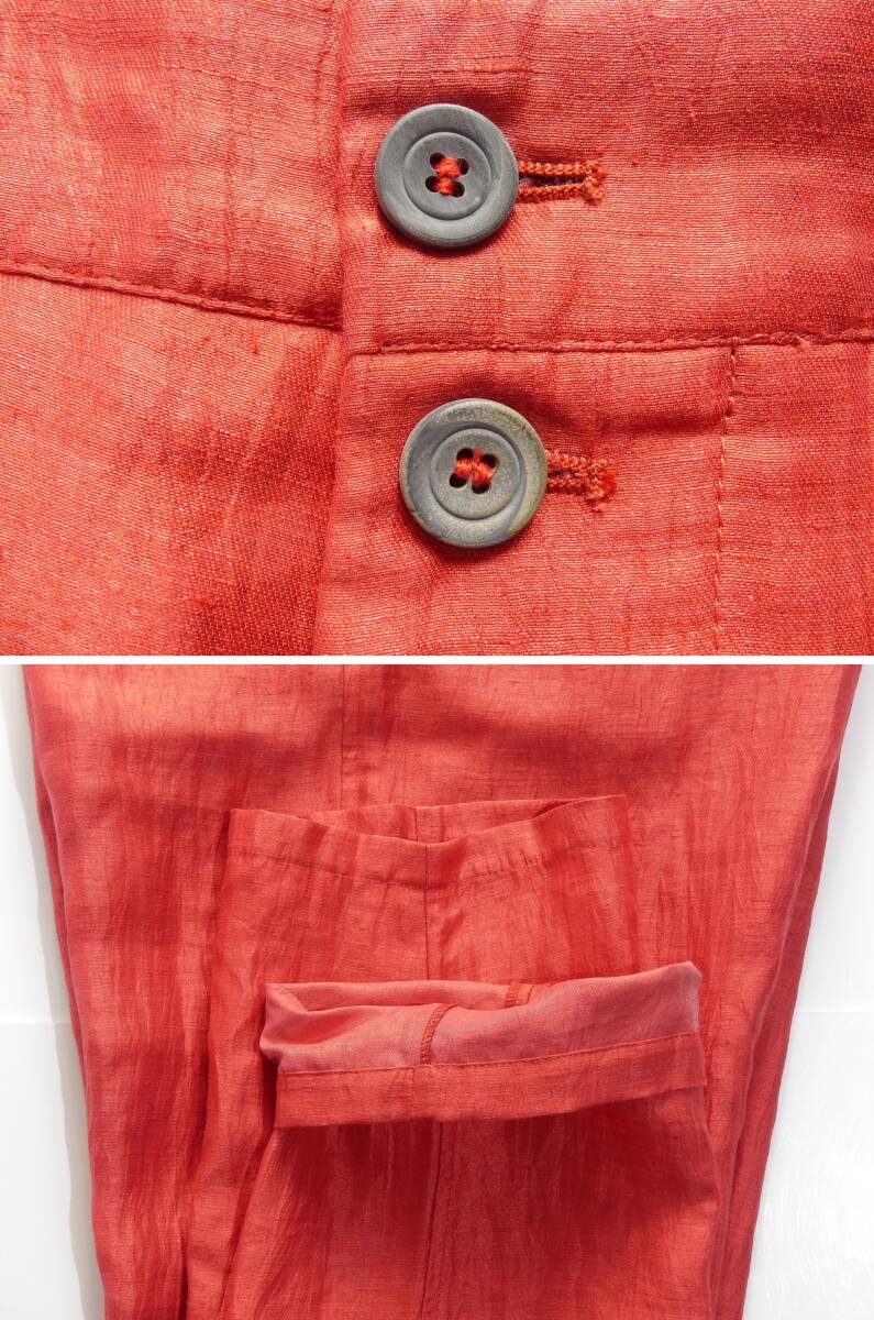 【サイズ】イタリアサイズ52 36インチ相当 実寸ウエスト92cm、股上31.5cm、股下88cm、わたり(股下10cm位置)33.5cm、裾幅19㎝