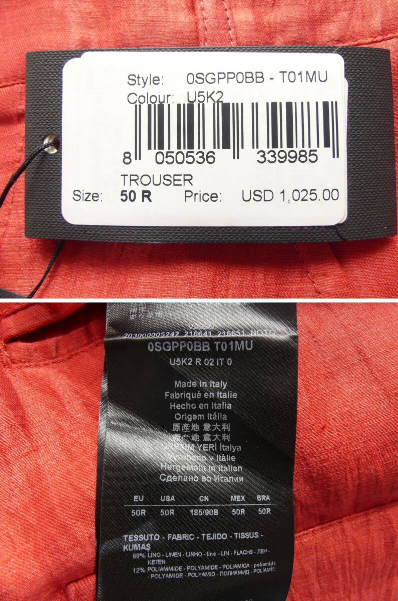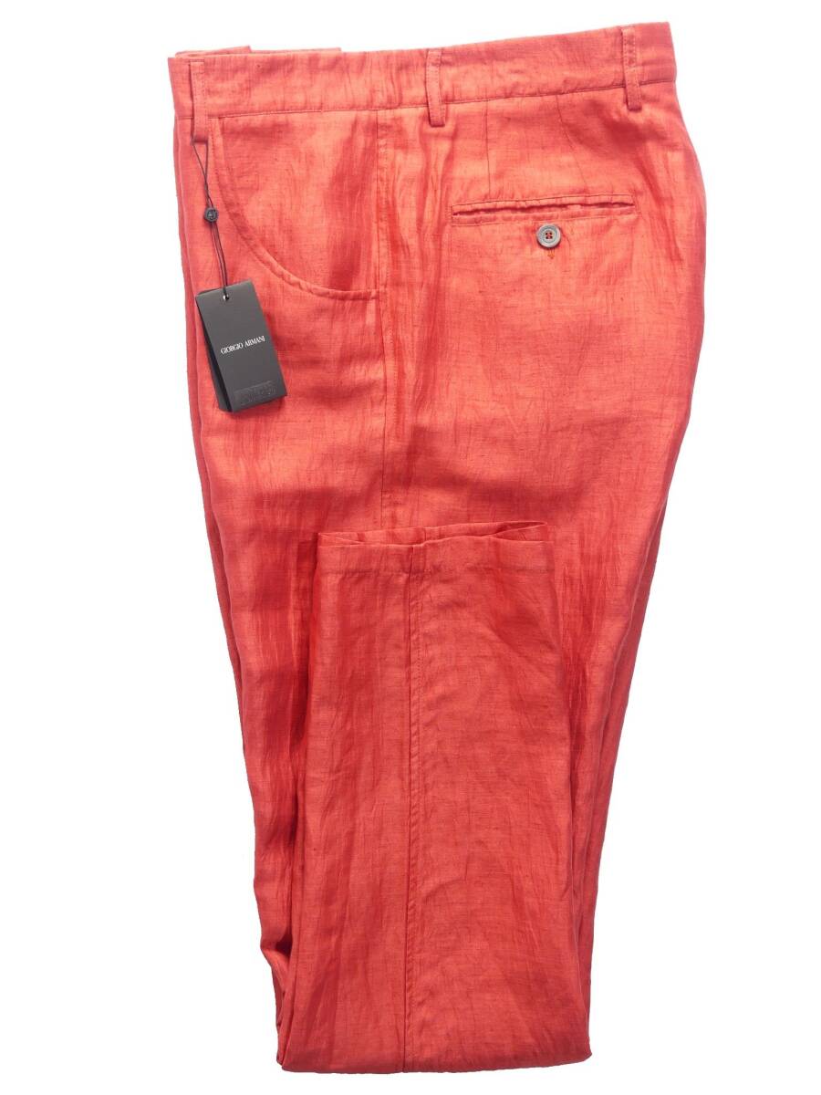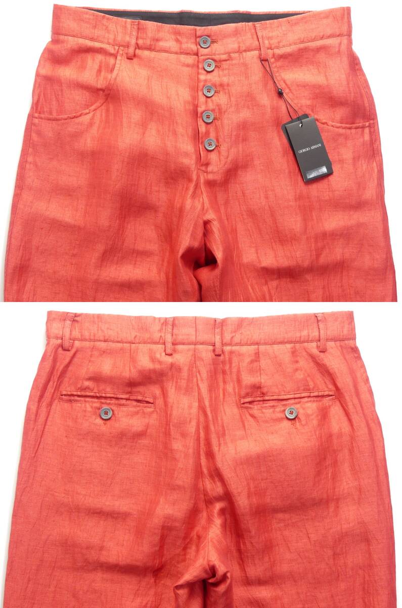 春夏物166,000円新品GIORGIO ARMANIアルマーニ★お洒落確定コレクション物。絶妙なルーズ感が洒落ている美発色リネンパンツ【52=36インチ