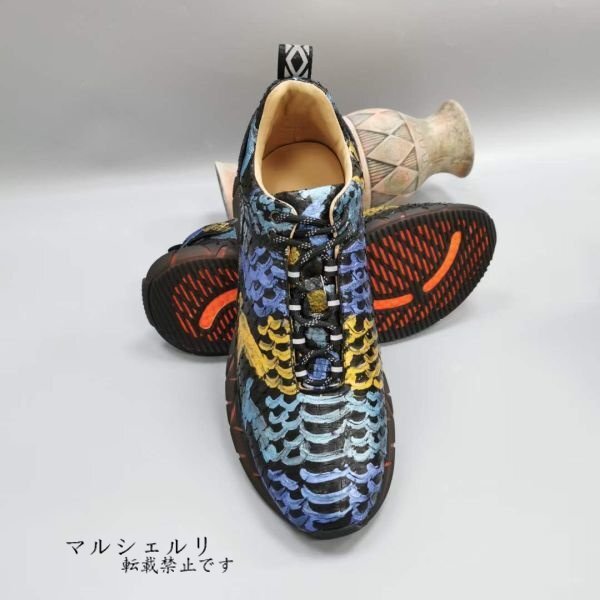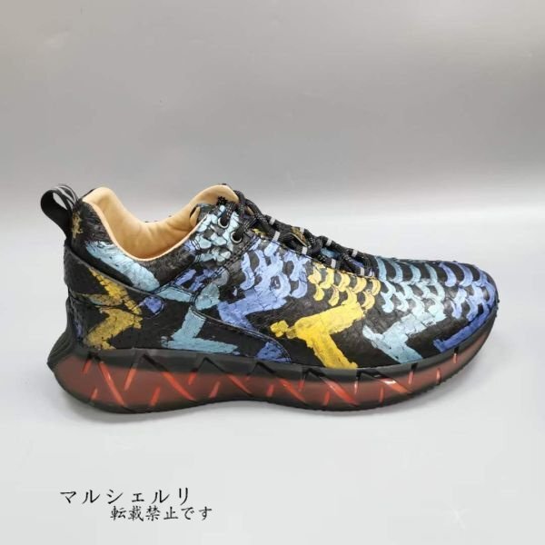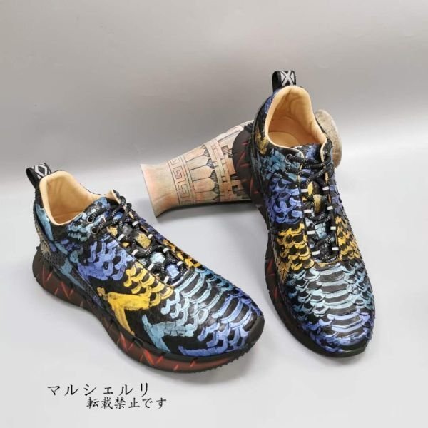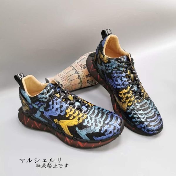 パイソン 蛇革 サイズ選択可 レザースニーカー 革靴 メンズスニーカー スポーツシューズ ウォーキングシューズ ハイキングシューズ 紐付き