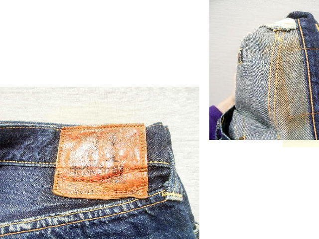 ●アウトシーム黄&黒耳 ●コインポケット黄耳 ●隠しリベット  ●Vステッチ ●ウエスト上部・シングルステッチ  ●オフセットセンターループ ●革パッチ ●股リベット  etc...