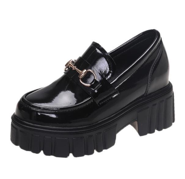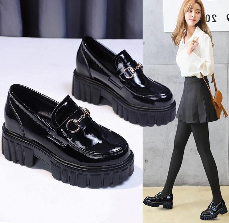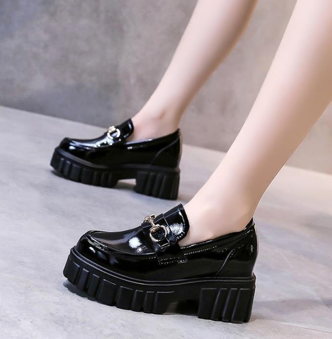 LRM414★レディース 厚底 ブラック パンプス カジュアル 身長アップ 原宿風 シンプル ローファー 春秋 スリッポン通勤 通学