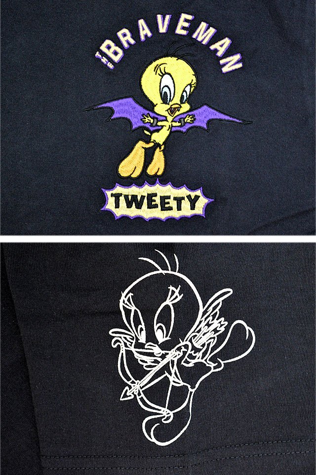 BR×LOONEYコラボ 天竺半袖Tシャツ◆The BRAVE-MAN スミクロMサイズ LTB-2405 ブレイブマン 刺繍 ルーニーチューンズ