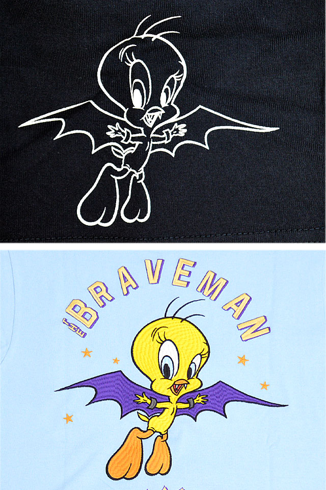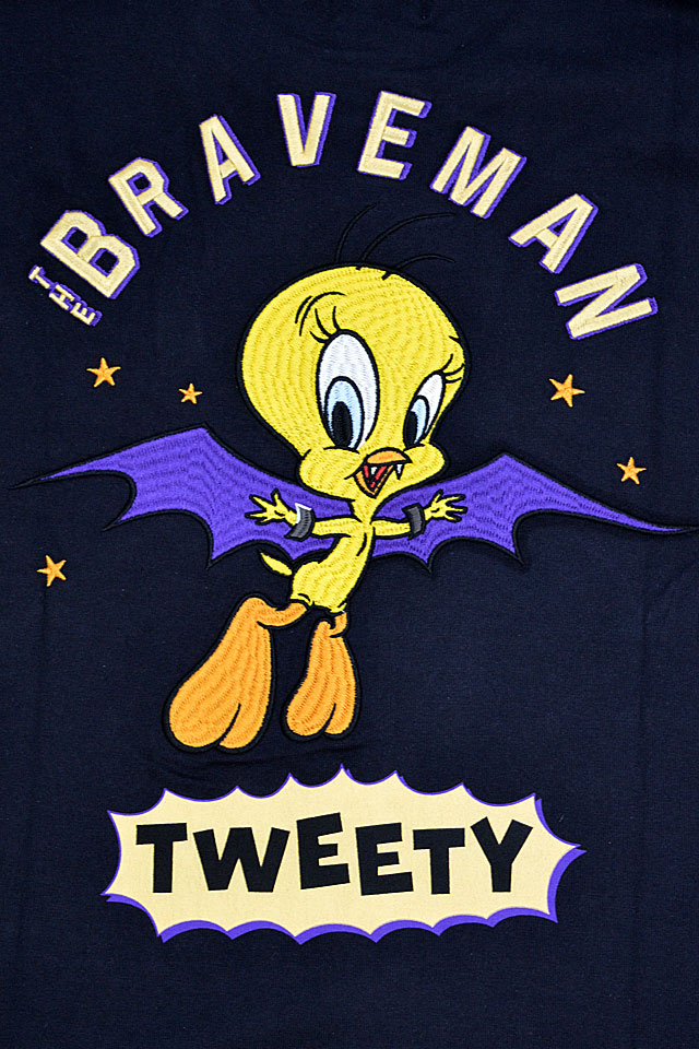 背中にはこうもりに扮したトゥイーティーが刺繍で描かれています。