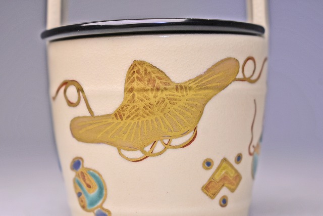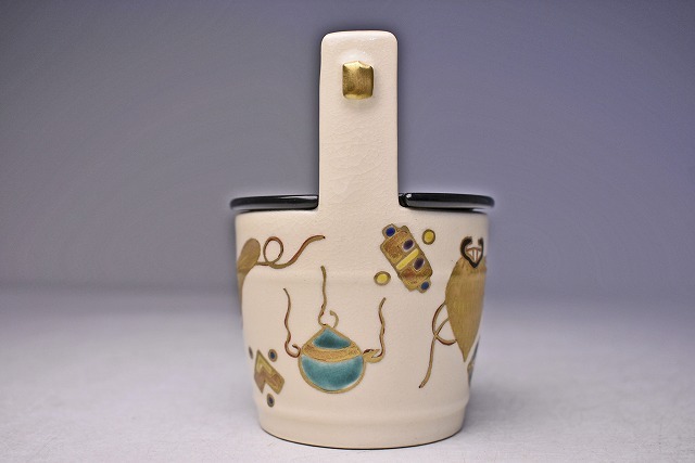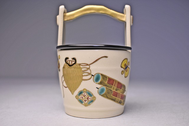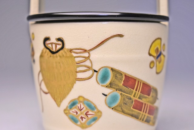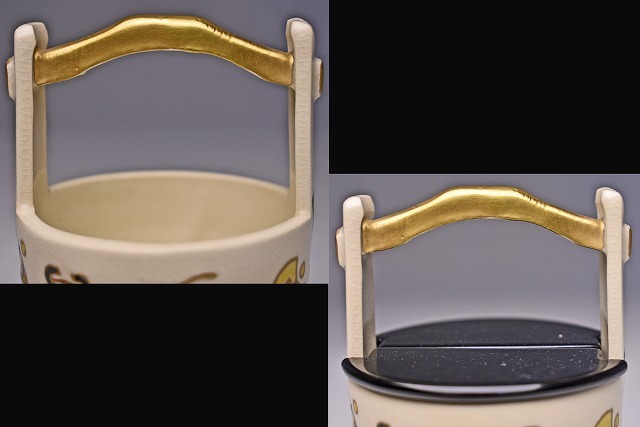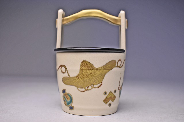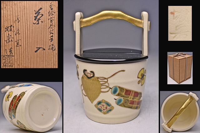 サイズは 75mmx高さ106mm です。 京都のベテラン 橋本城岳 氏の 作品です。 仁清風の 色絵金彩の 茶入です。 宅配便60サイズにて発送します。 他にも多数出品してます。同梱対応いたします。
