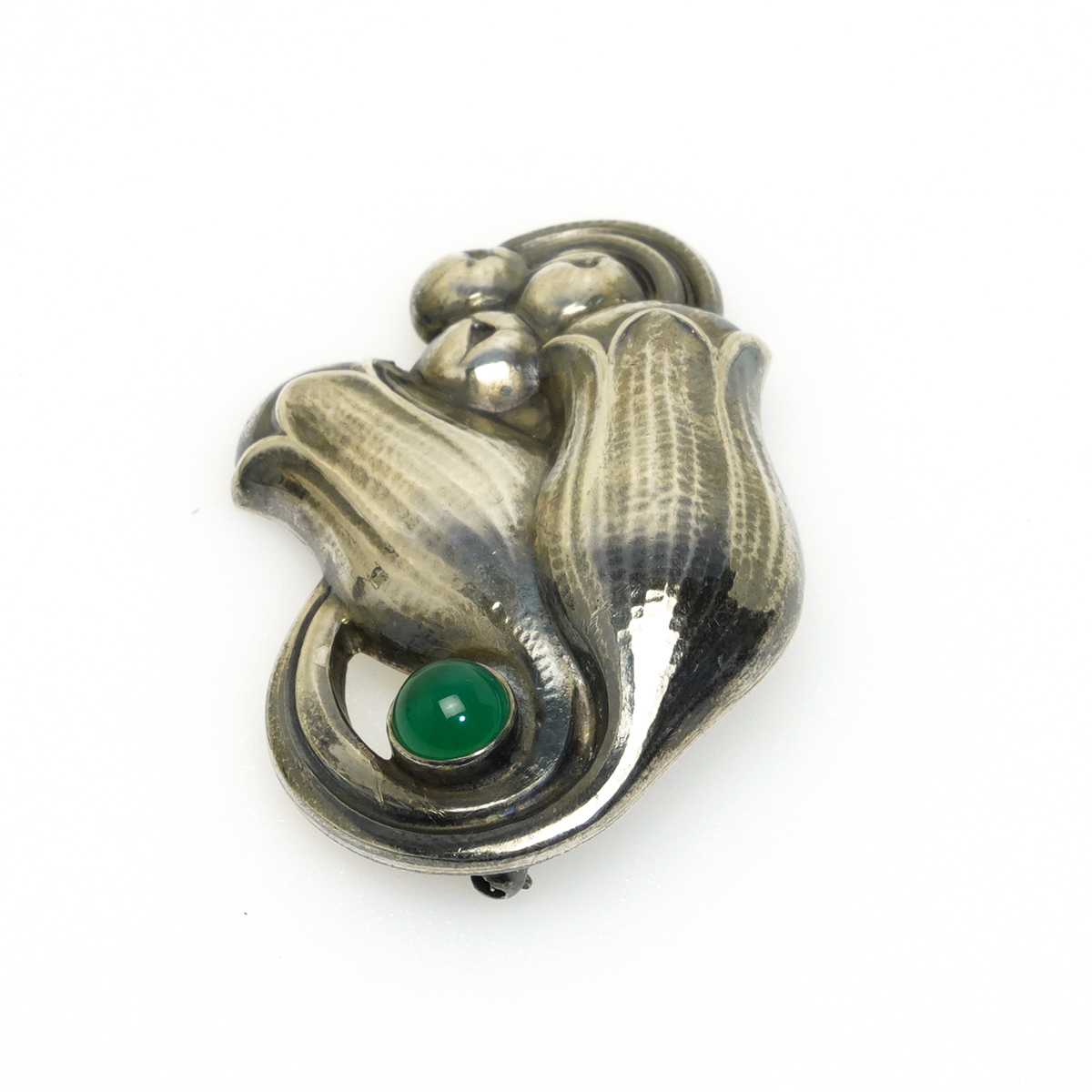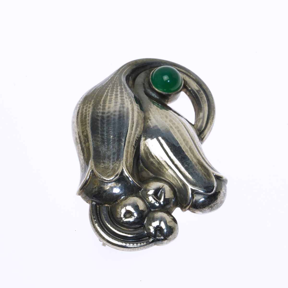 ジョージジェンセン 100B クリソプレーズ ブローチ フラワー チューリップ GEORG JENSEN