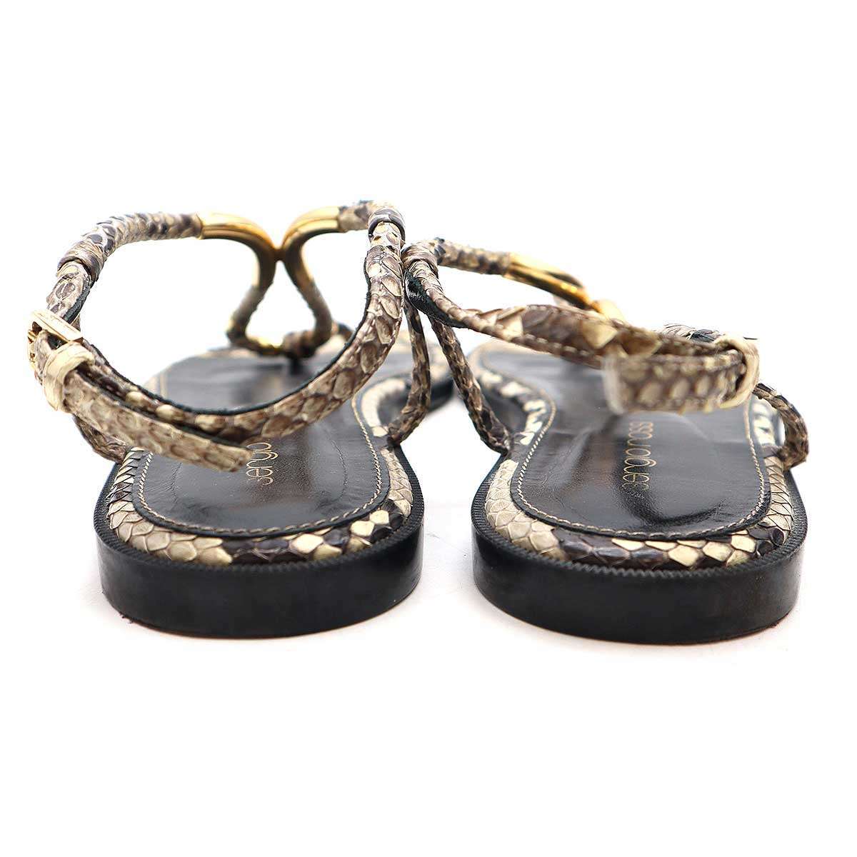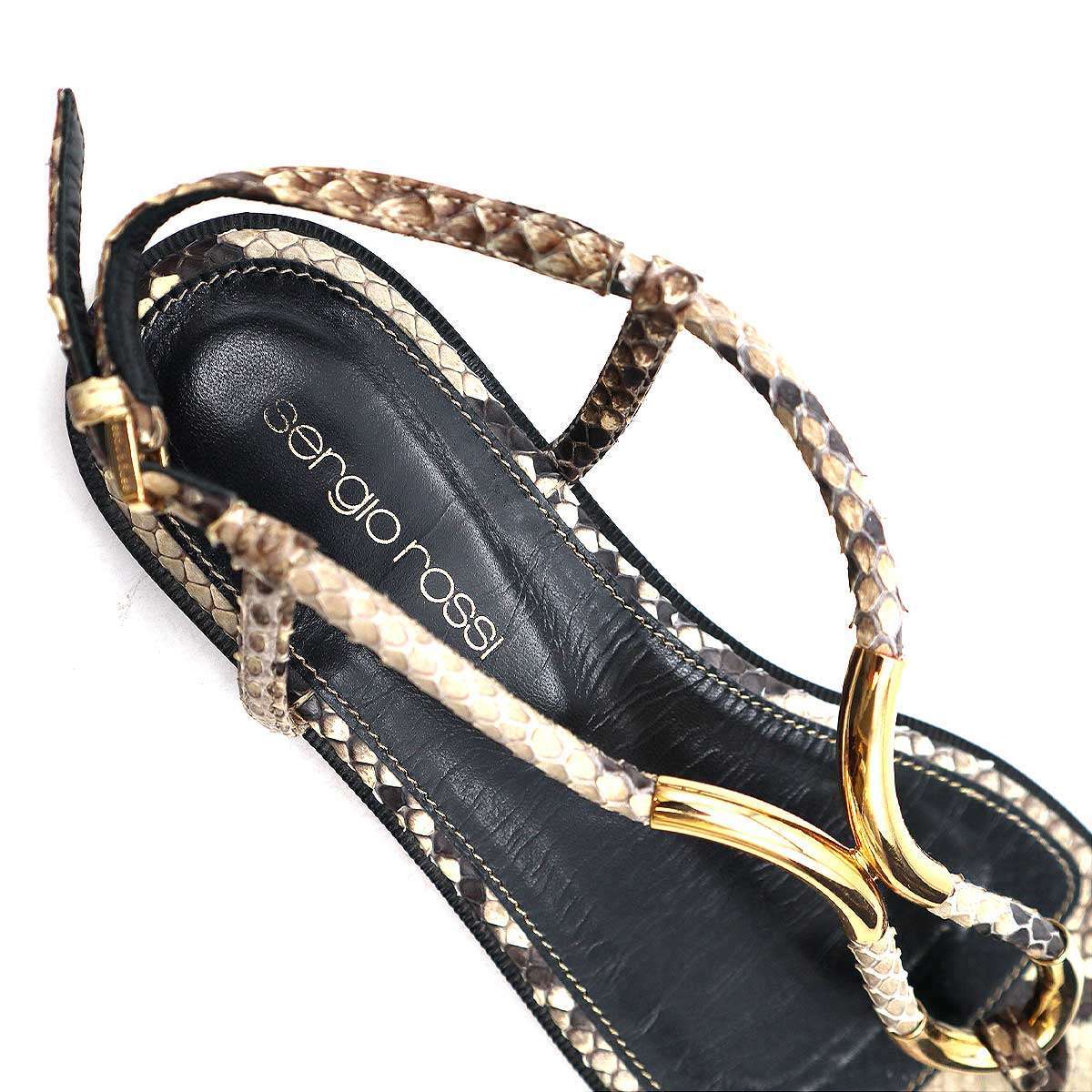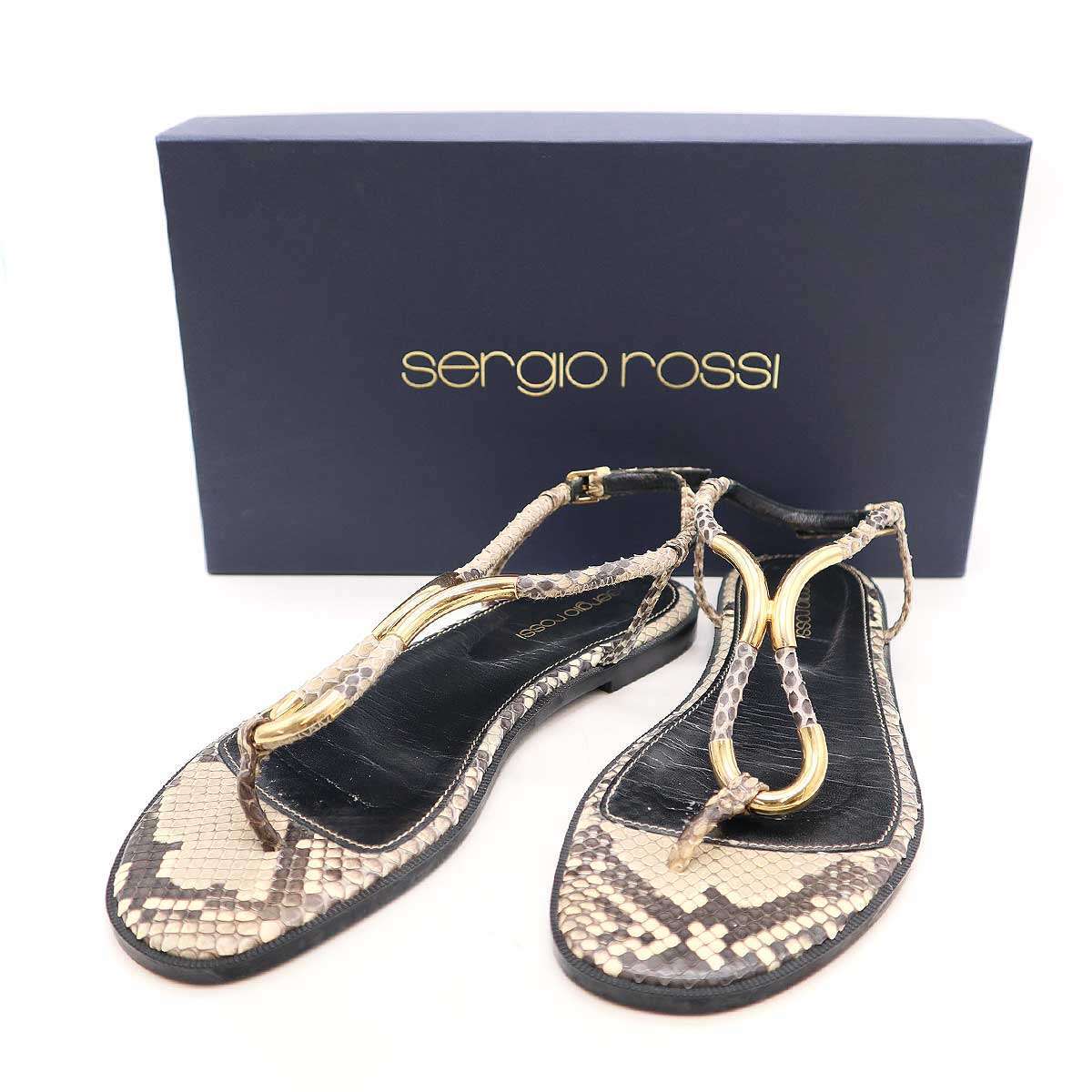 sergio rossi セルジオ ロッシ パイソンメタル フラットサンダル グレー系 37 ITC73KMU2QPA