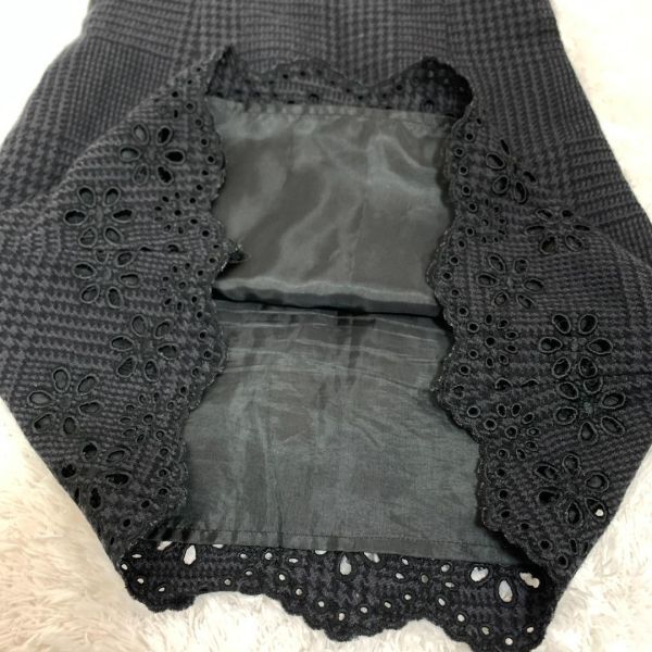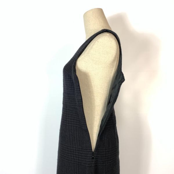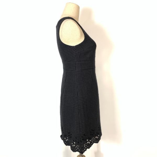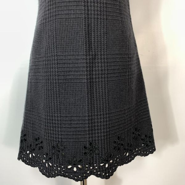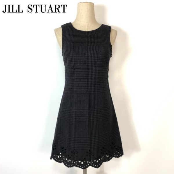 ジルスチュアート千鳥柄レース刺繍ノースリーブワンピースグレーJILL STUART ポケット 無ウール 0 B6129