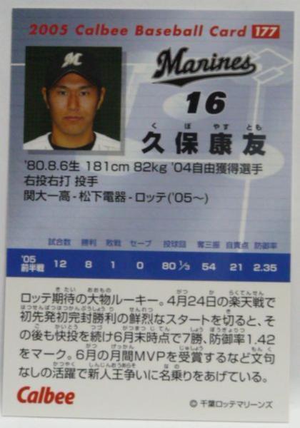 カルビープロ野球カード2005年#177【久保 康友(千葉ロッテ マリーンズ)】平成17年チップスおまけ食玩トレーディングカード【中古】送料込