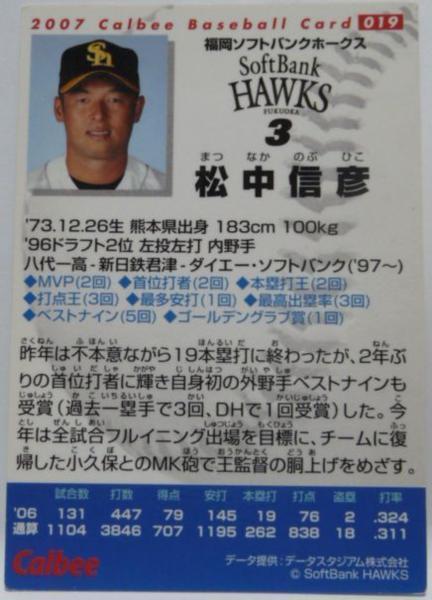 カルビープロ野球カード2007年#019【松中 信彦(福岡ソフトバンク ホークス)】平成19年チップスおまけ食玩トレーディングカード(中古)送料込