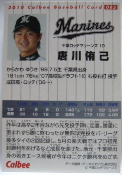 カルビープロ野球カード2010年#085【唐川 侑己(千葉ロッテ マリーンズ)】平成22年チップスおまけ食玩トレーディングカード【中古】送料込