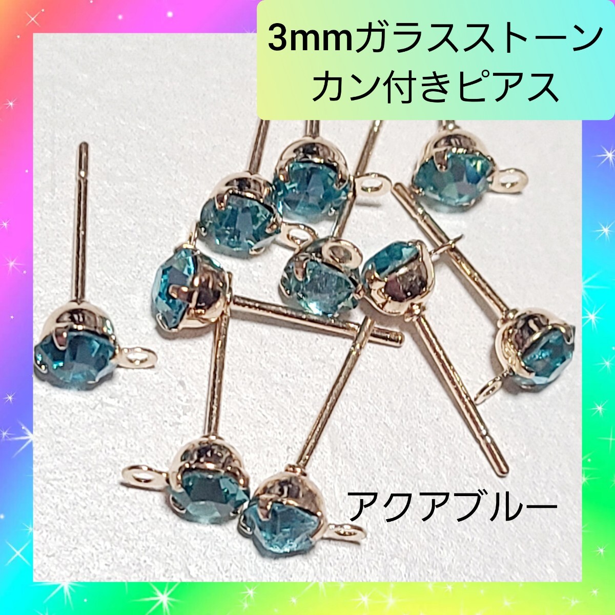 ☆ハンドメイド用 3mm ガラスストーン カン付きピアス☆(キャッチ付き)