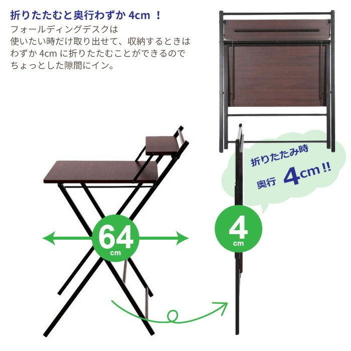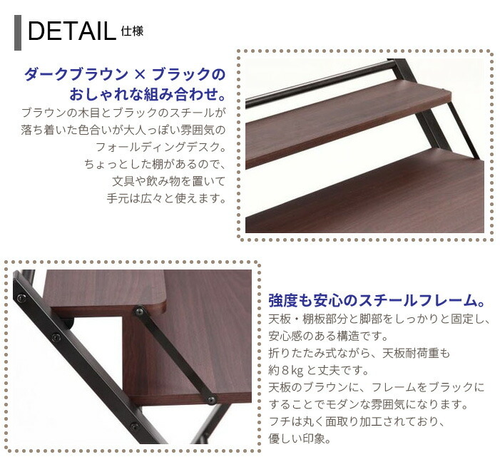 | フォールディングデスク。 折りたたみ式なので、使わない時は場所を取らずに収納できます。 届いたらすぐに使える完成品。 |