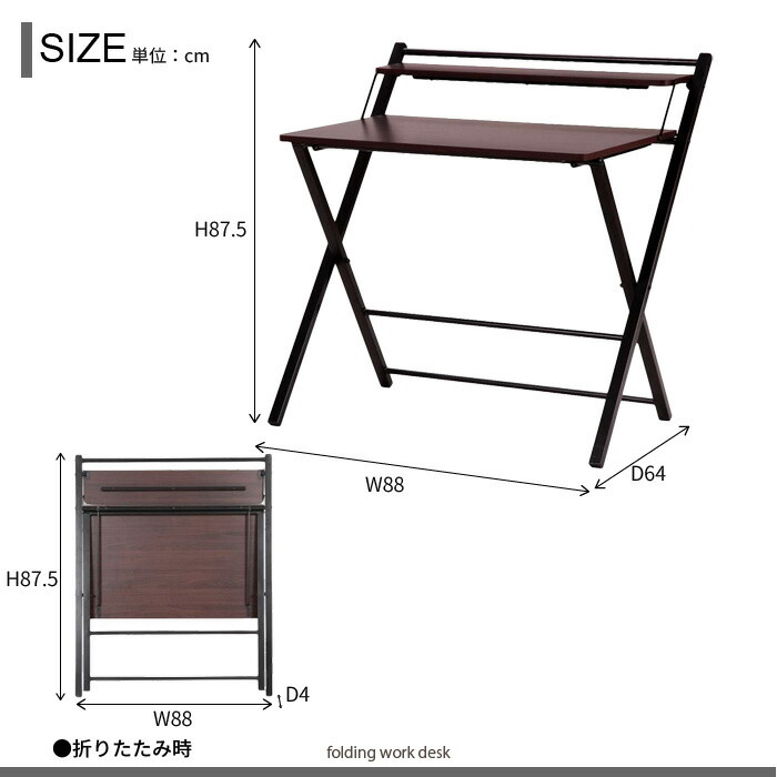 | [商品サイズ]幅88×奥行64×高さ87.5cm [折りたたみ時]幅88×奥行4×高さ107.2cm |