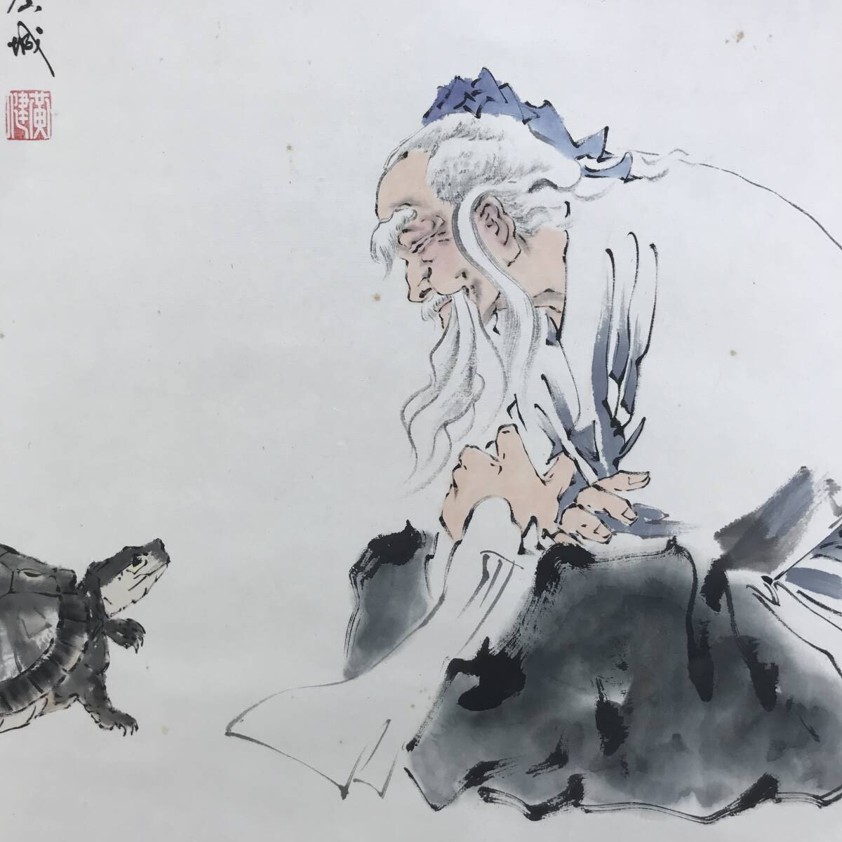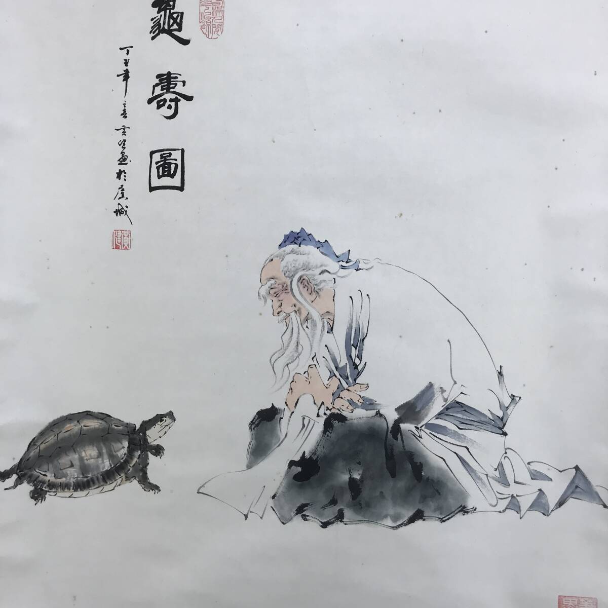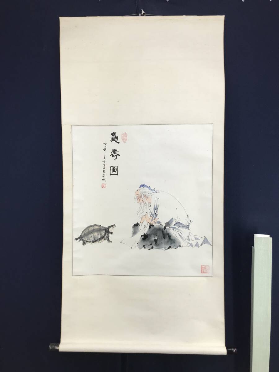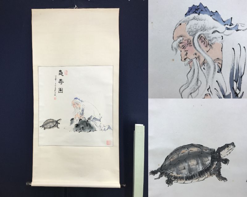 真作/黄健/亀寿図/掛軸☆宝船☆AF-383