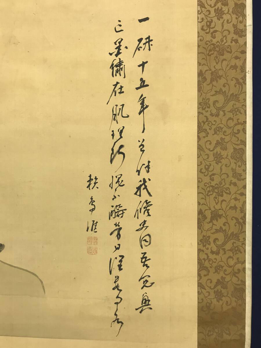 【作品状態】 本紙は絹本肉筆です。本紙は薄汚れ、多少の汚れシミあります。表装は絹表装で多少の時代感あります。