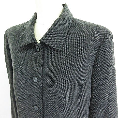 里麻 ジャケット 長袖 ステンカラー 13R ブラック ※EKM レディース