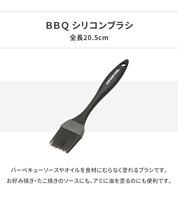 | バーベキューソースやオイルを食材にむらなく塗れます。お好み焼き・たこ焼きのソースにも、アミに油を塗るのにも便利です。 |