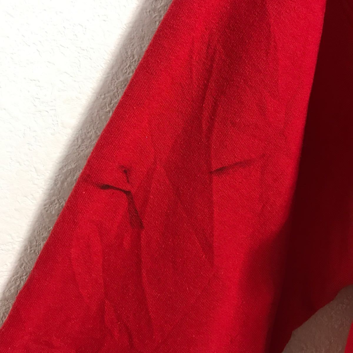 お腹、袖に汚れがあります。