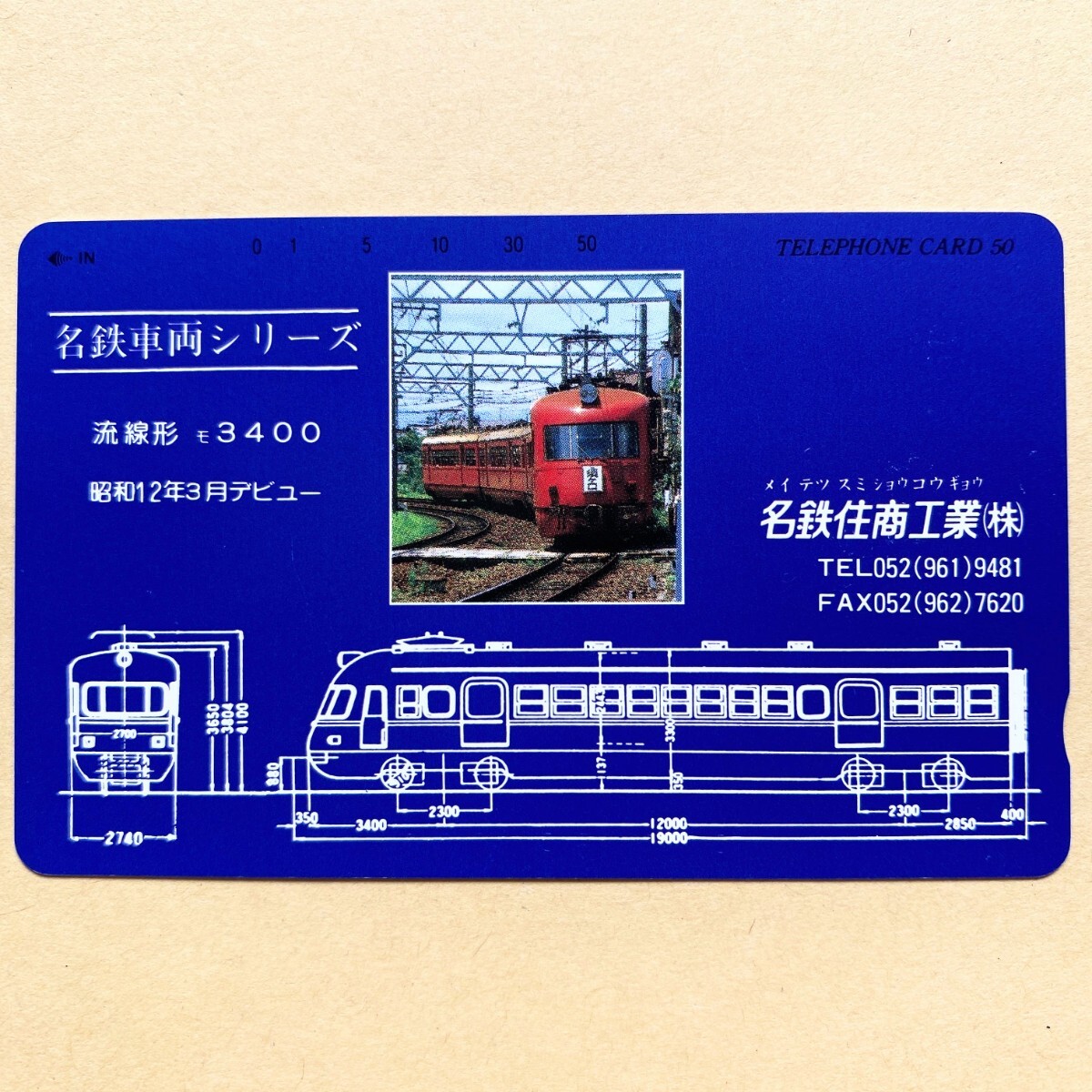 【未使用】鉄道テレカ 50度 名鉄車両シリーズ 流線形 モ3400 昭和12年3月デビュー 名鉄住商工業㈱