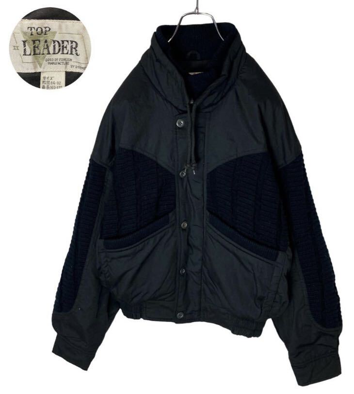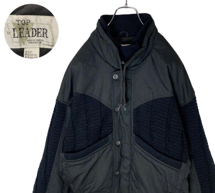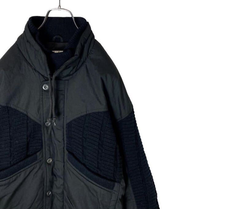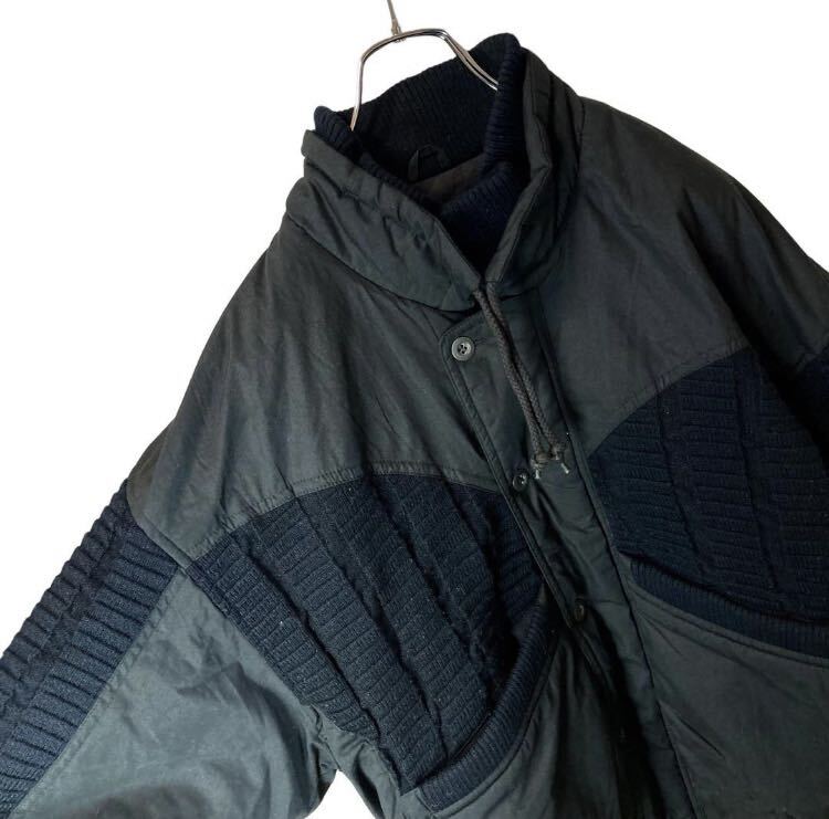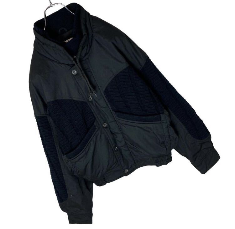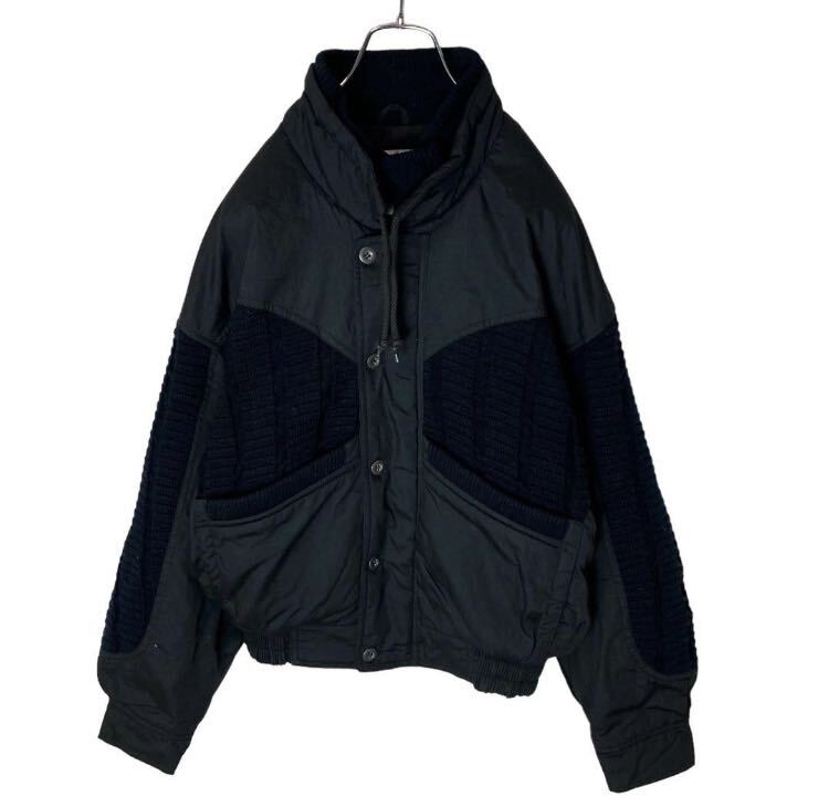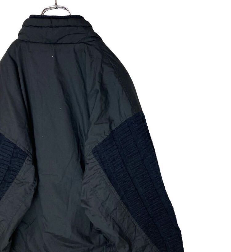 グッドデザイン!レトロ古着切り替え くすみブラックブルゾン中綿入りゆったりサイズ