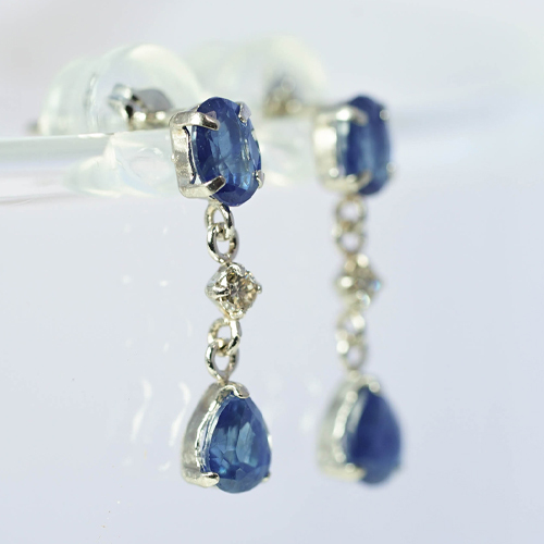 石数 | サファイヤ4石0.80カラット(2石0.40カラットx2) ダイヤモンド0.04カラット(0.02カラット×2石) |