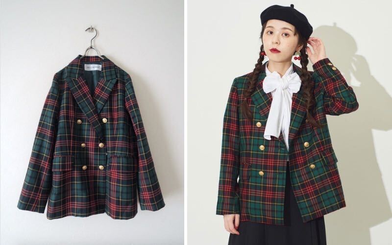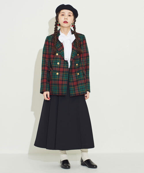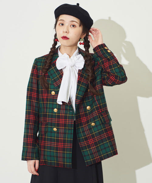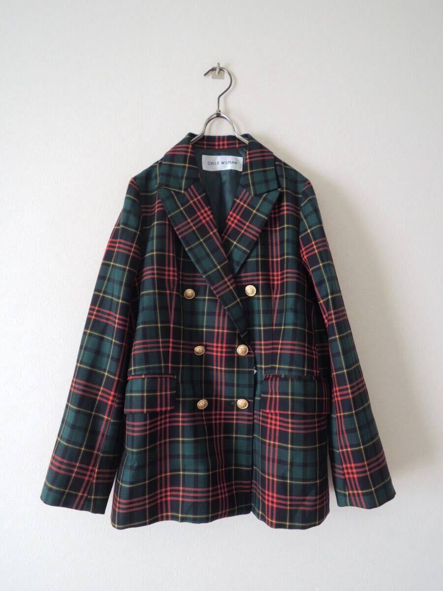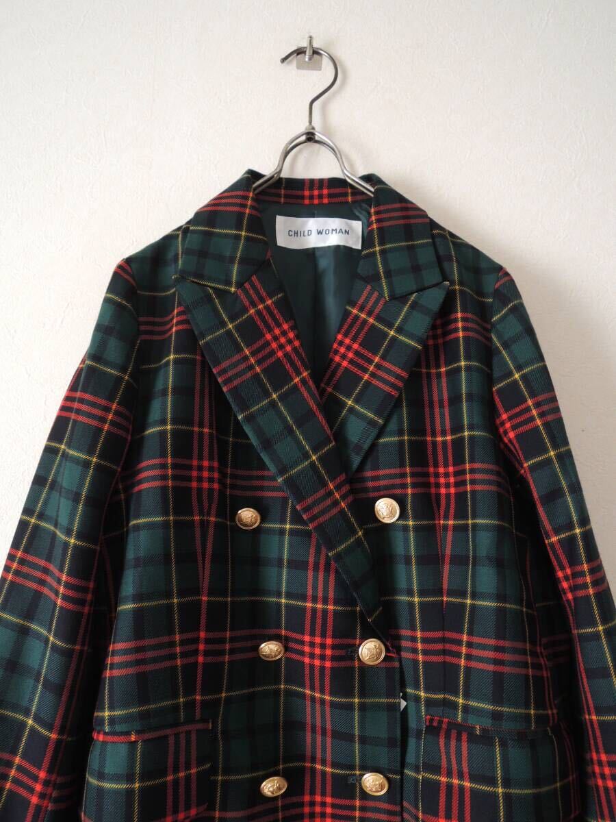 タグ付き未使用 CHILD WOMAN チャイルドウーマン ウール 100% 正統派 トラッド タータンチェック ダブル ボタン ジャケット ブレザー