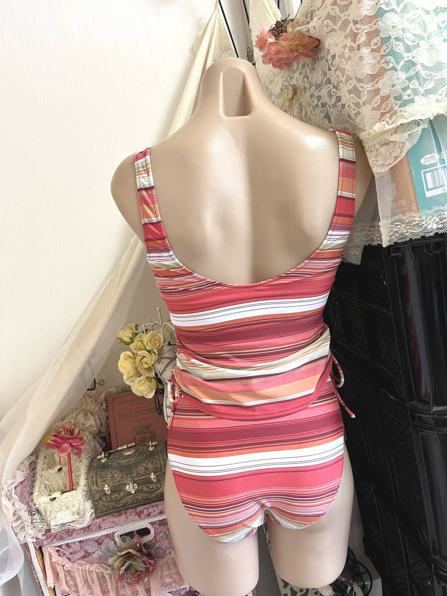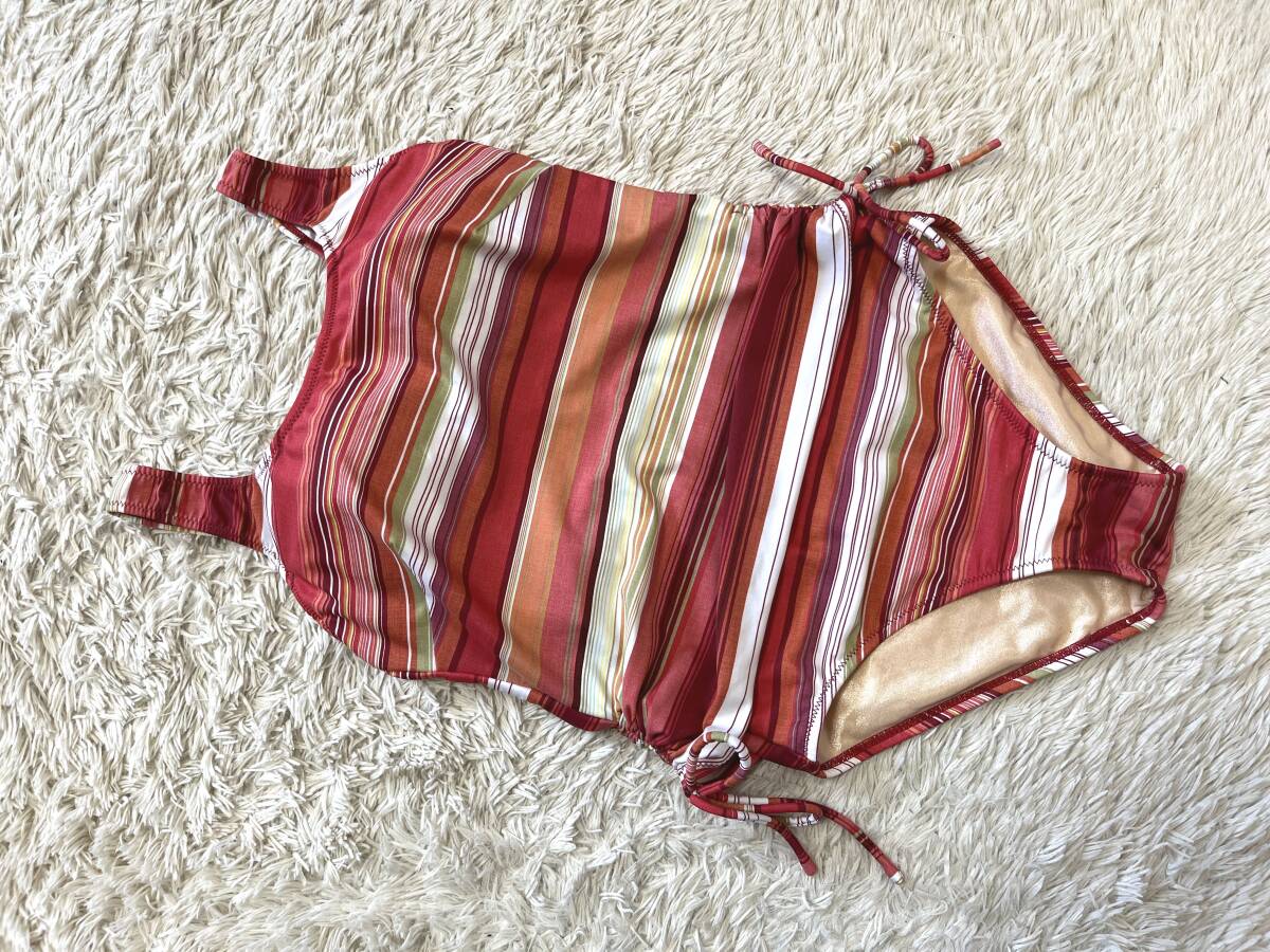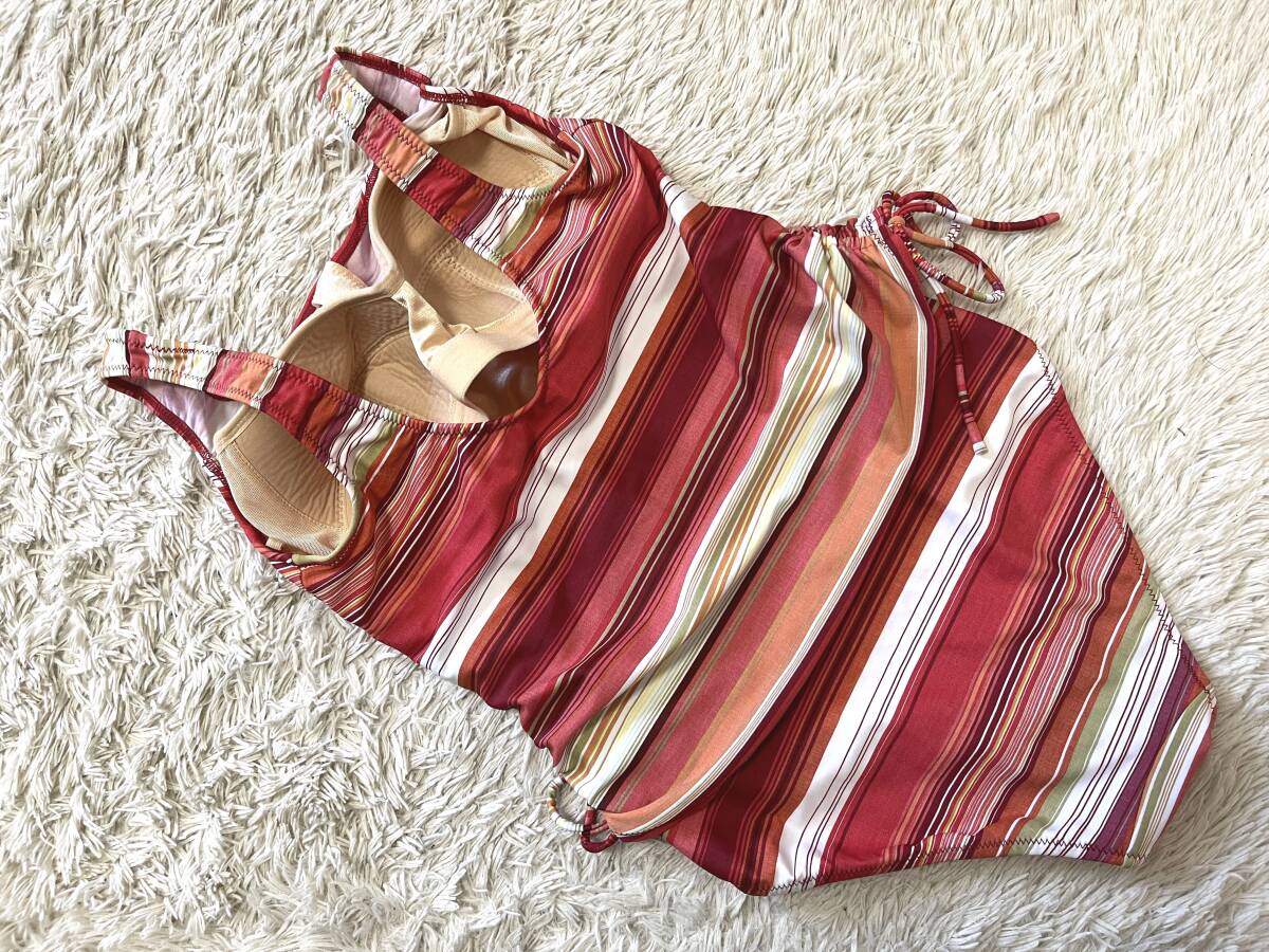 ●レディース水着11L●アルジャン◆ツルスベ総裏地おなか部分ひし形二重裏地*補正水着*タンキニ風ワンピース水着:赤系