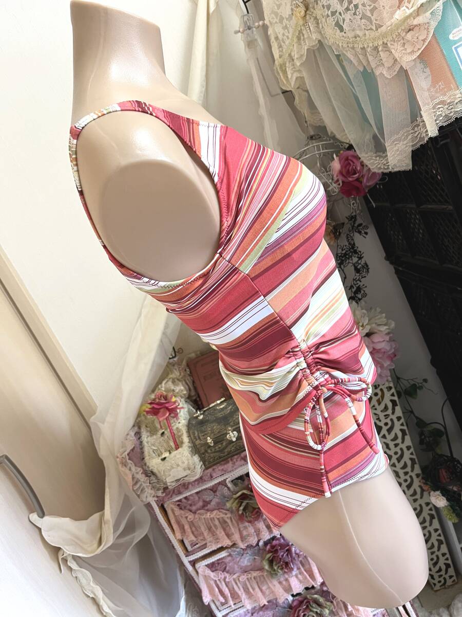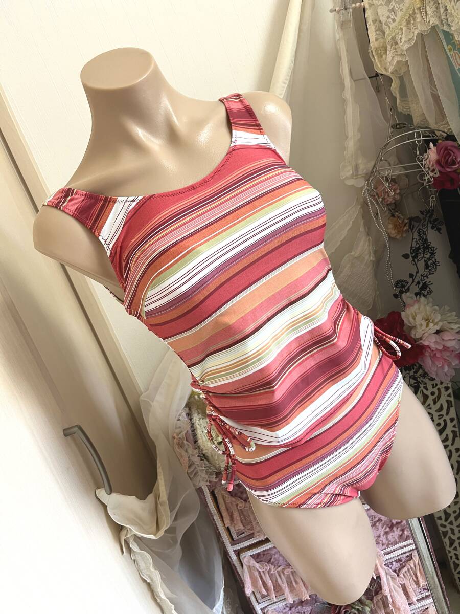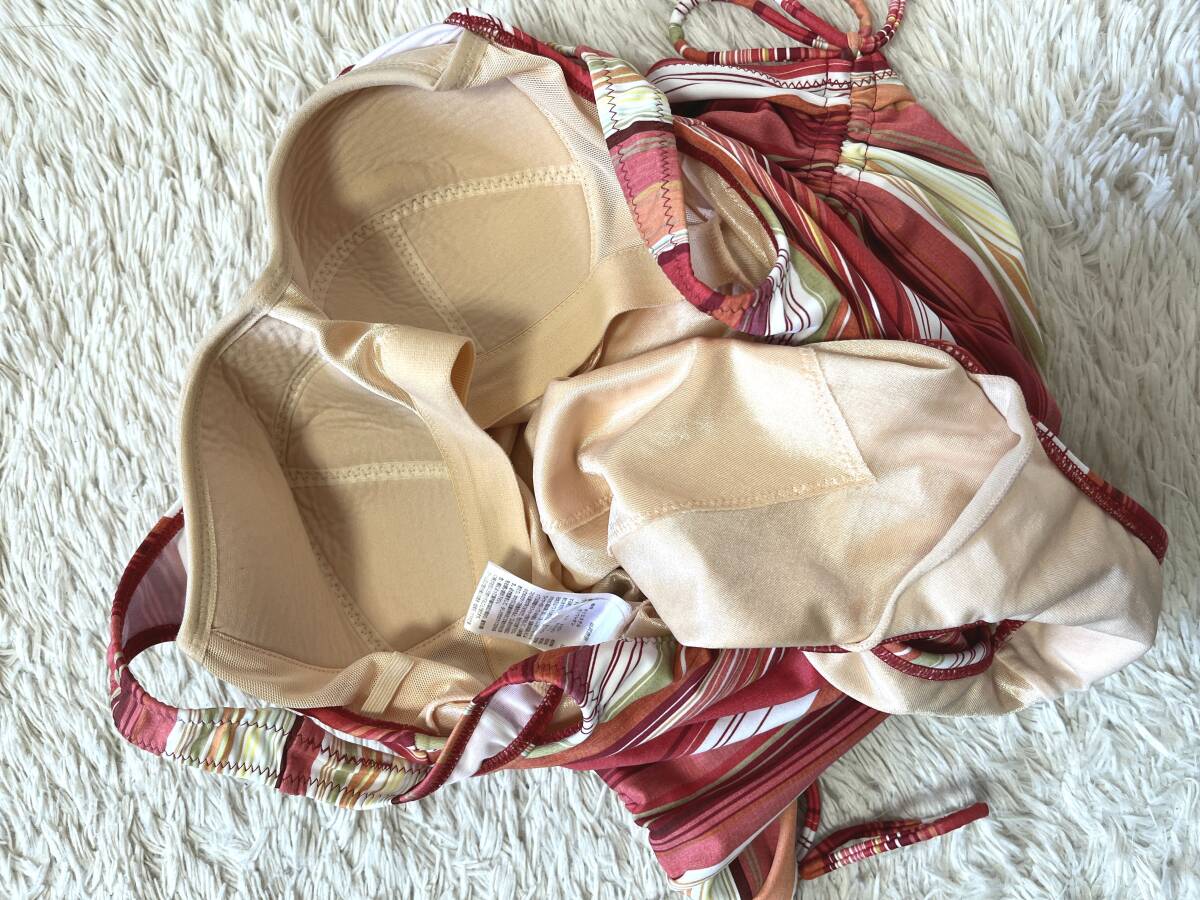 ●レディース水着11L●アルジャン◆ツルスベ総裏地おなか部分ひし形二重裏地*補正水着*タンキニ風ワンピース水着:赤系
