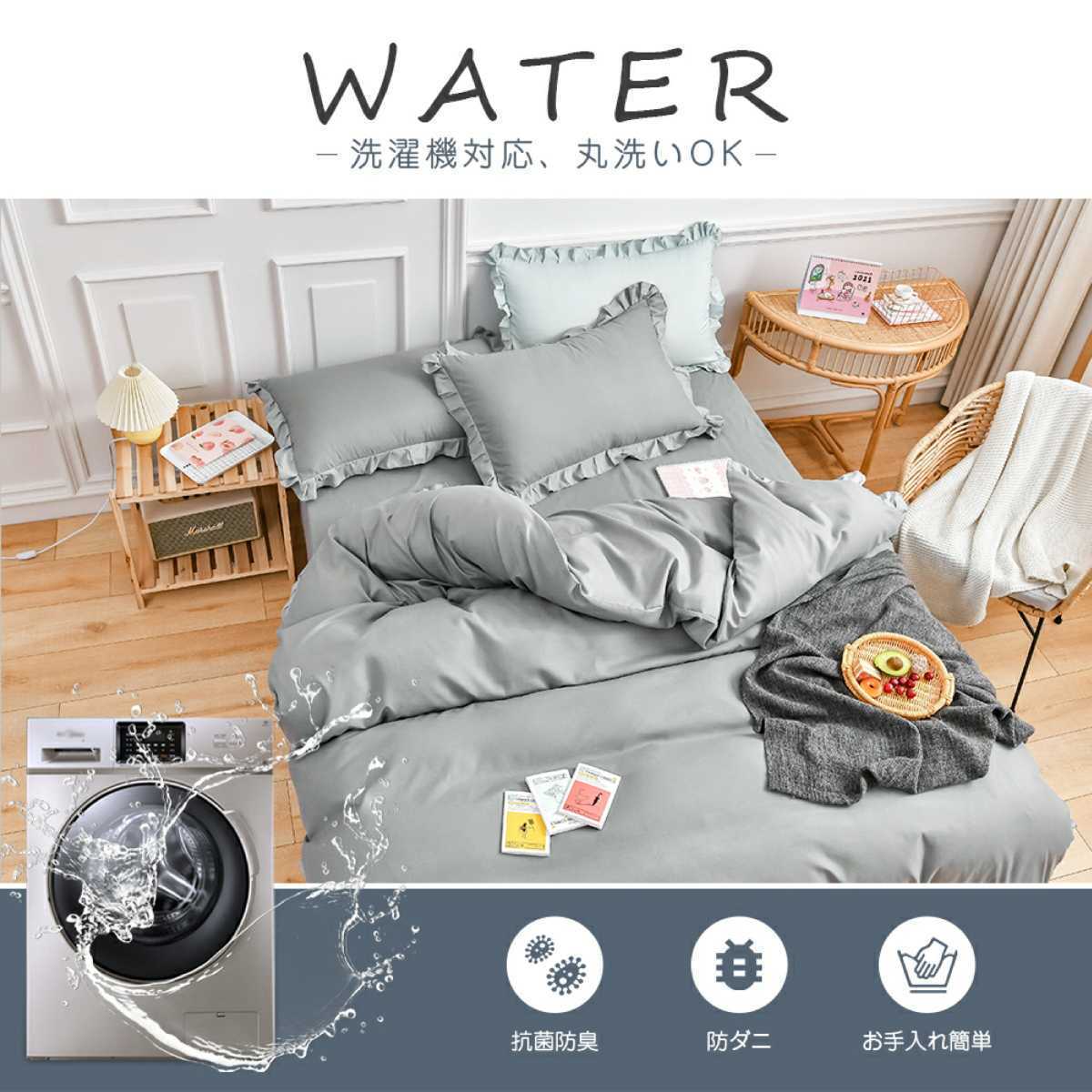 布団カバー 4点セット セミダブル シーツ 寝具カバーセット 掛け布団カバー ボックスシーツ 枕カバー ベッド用 布団用 ピーチスキン加工 洗い替え速乾タイプ 洋式・和式兼用 フリル付き おしゃれ (ブルー)