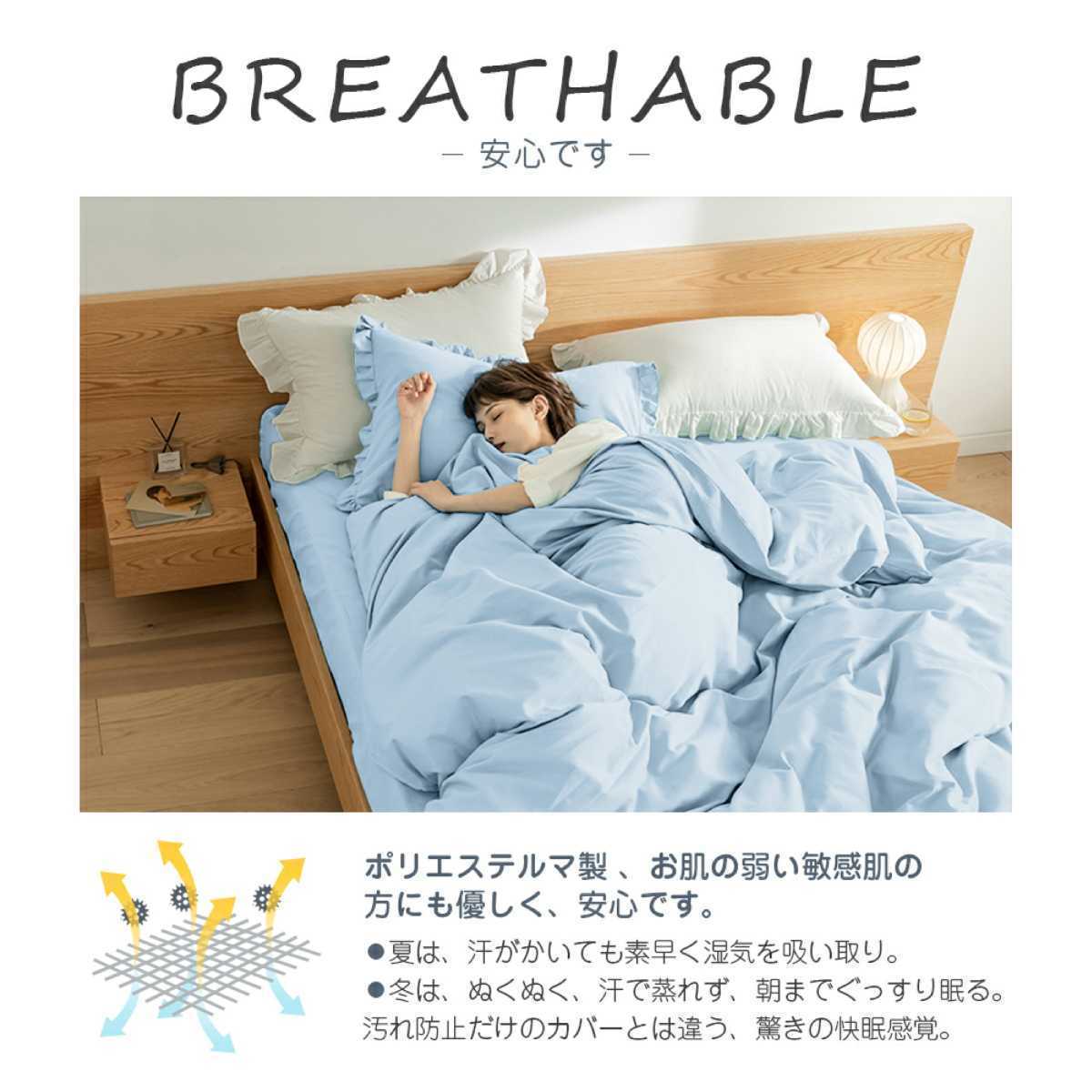 【優れた通気性】:通気性と吸放湿性優れて、夏の場合は、汗をかいても素早く湿気を吸い取り、発散してくれるのでいつでもサラサラとした肌触りです。冬の時、カバーの繊維と繊維の間に暖かな空気をためてくれるので、保温性が高く、暖かな状態を保ってくれます。