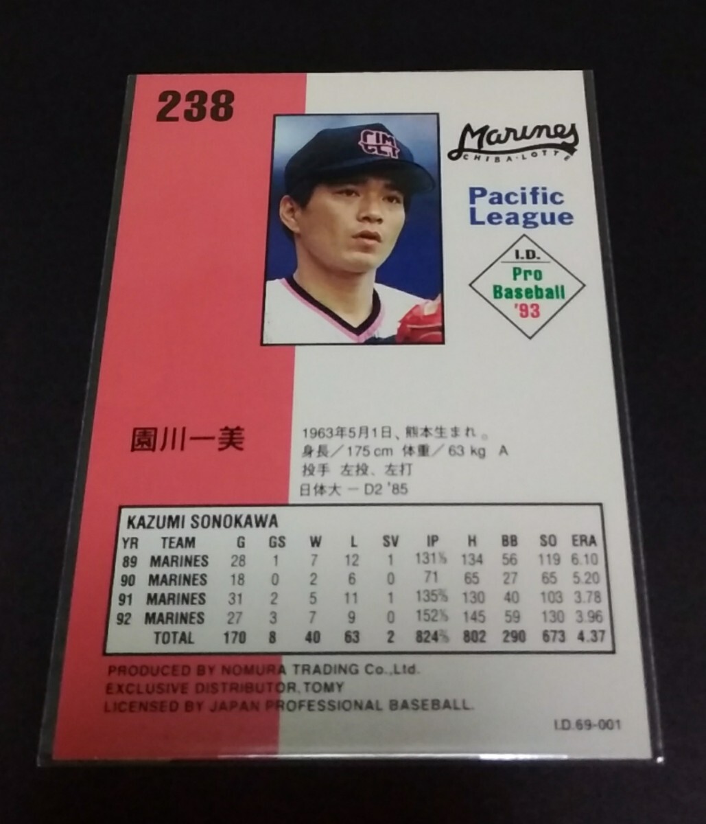 1993年TOMY ID 園川一美(ロッテ)No,238。