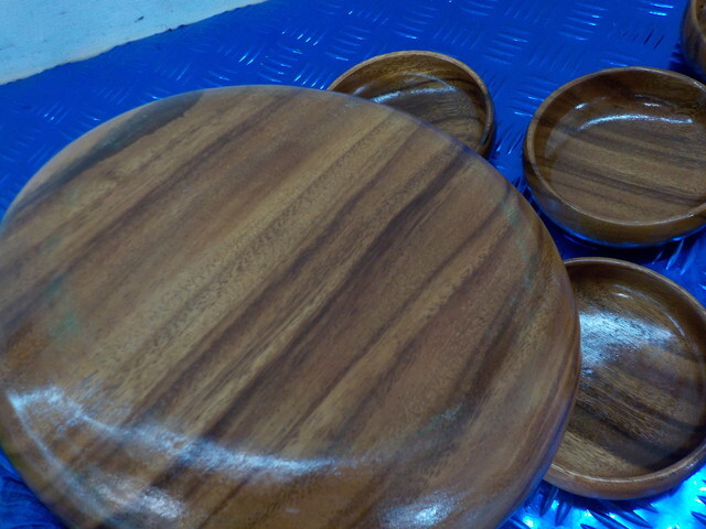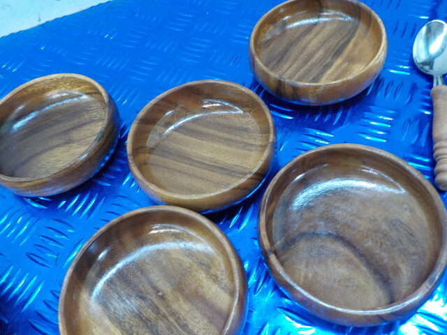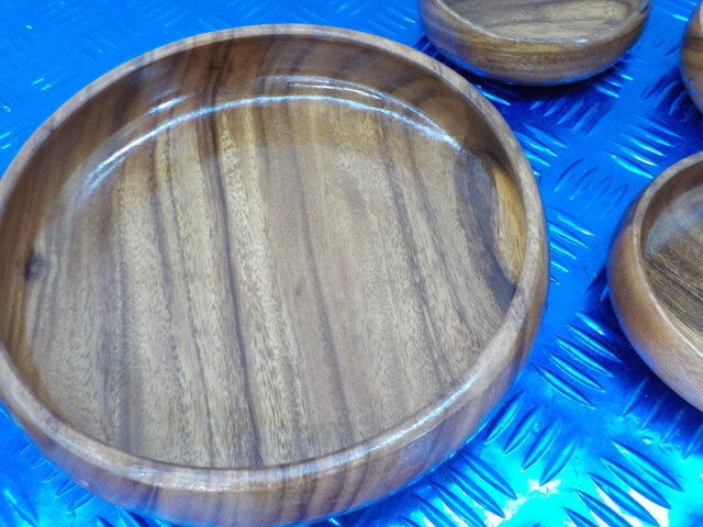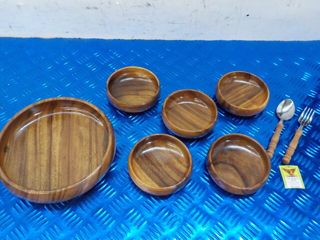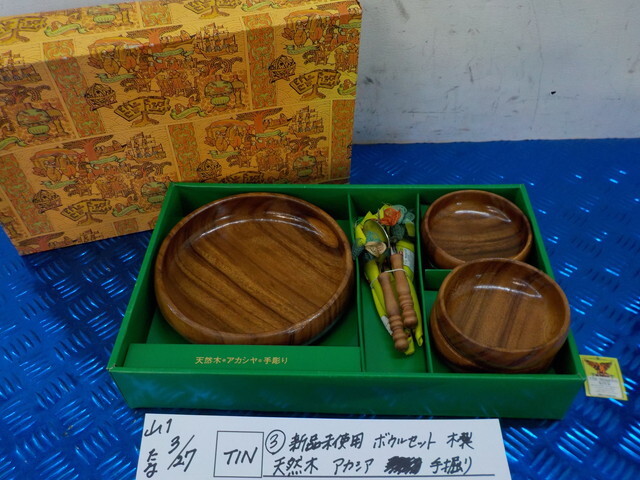 TIN●〇(3)新品未使用 ボウルセット 木製 天然木 アカシア 手掘り 皿 食器 6-3/26(あ)