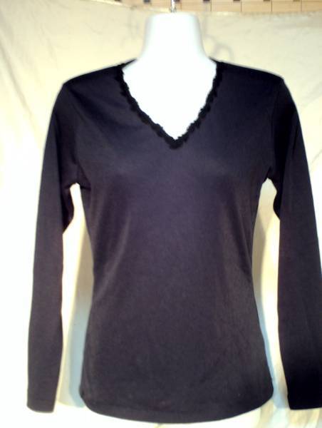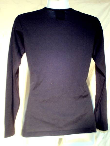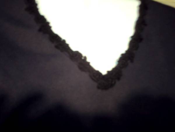 フロントVあきでV縁にバラ刺繍入りでお洒落なカットソーになります。やや丈長めで細身なシルエットになります。中古ですがあまり着用なく自宅保管ありです。お色:ブラック 生地:ポリエステル75% 綿25% サイズ:M バスト79~87 着丈56 身幅37