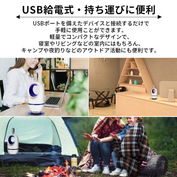【USB給電式・持ち運びに便利】吸引式蚊取り器はUSBで5V安全電圧を駆動します。アダプタやパソコンようなUSBポートを備えた任意のデバイスと接続するだけで手軽に使用ことができます。軽量でコンパクトなデザイン、寝室やリビングなどの室内にはもちろん、キャンプや夜釣りなどのアウトドア活動にも持ち運びに便利です。