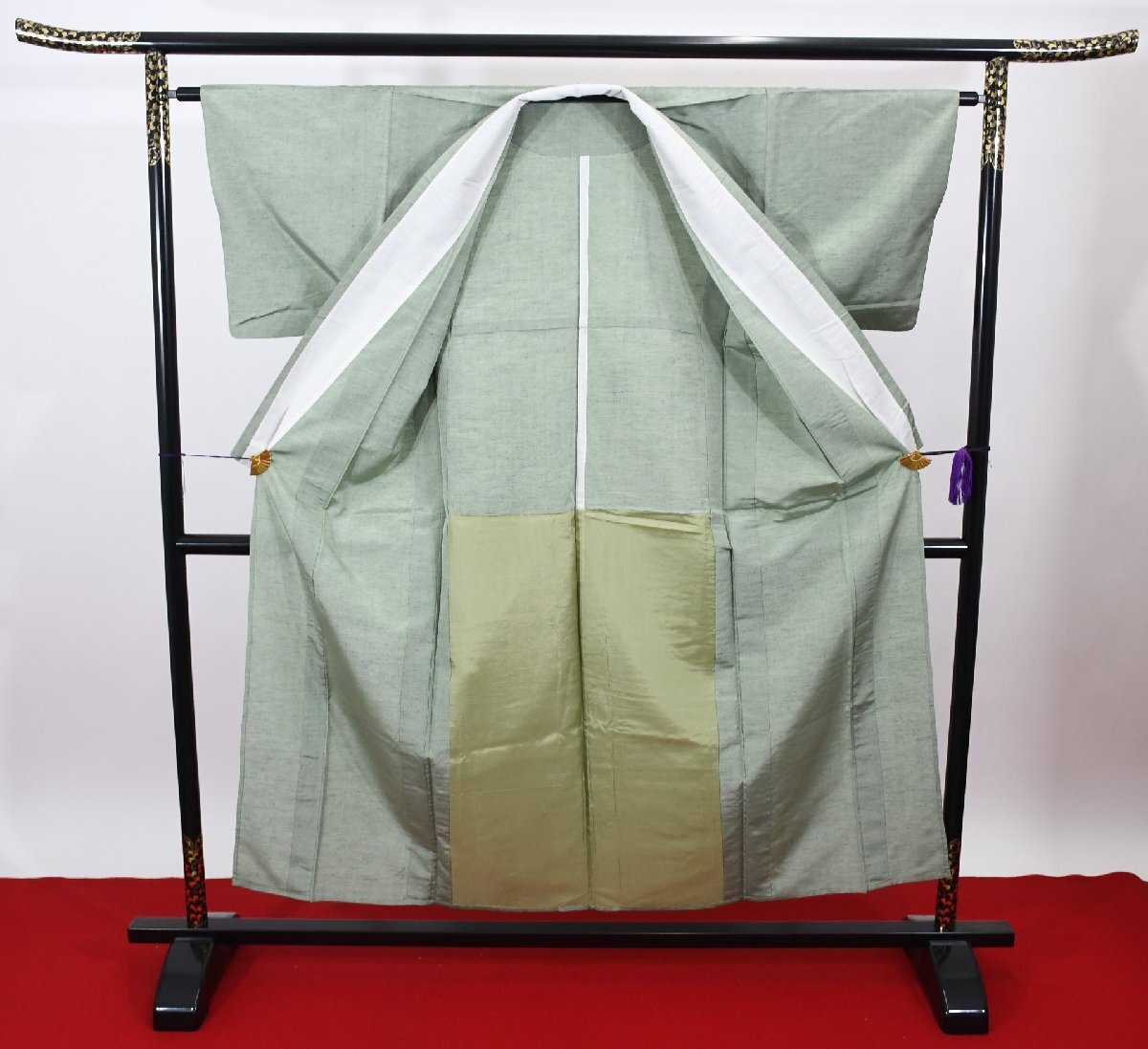 サイズ | ▼身丈 (背中から) 149cm ▼裄丈 63cm ▼袖丈 43.5cm ▼後巾 29.5cm ▼前巾 24cm |