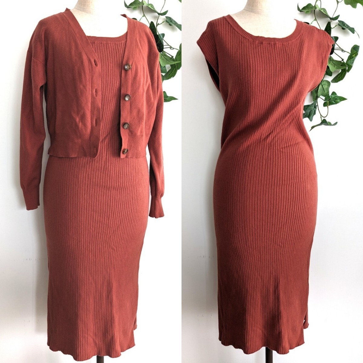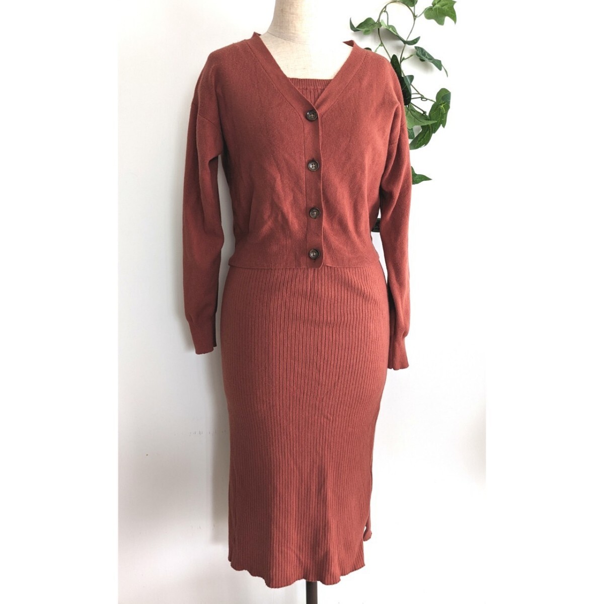 ワンピースのインナーにカットソーや薄手のニットを合せて着用したり、パンツとのレイヤードスタイルも◎。カーディガンは単品で羽織としてもお使い頂けます。1組あると着こなしの幅が広がる、汎用性の高いセットです。