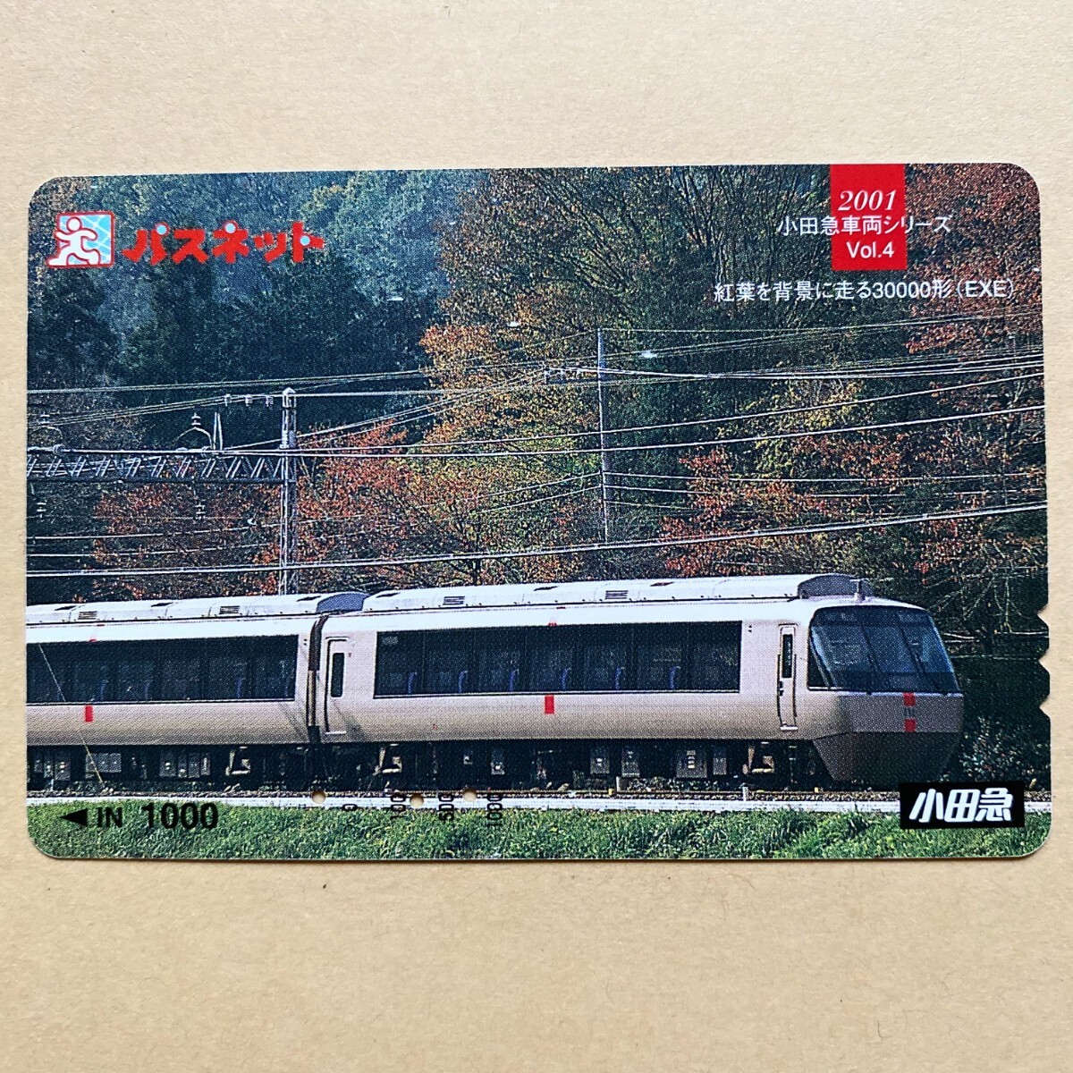 【使用済】 パスネット 小田急電鉄 2001小田急車両シリーズ Vol.4 紅葉を背景に走る30000形(EXE)
