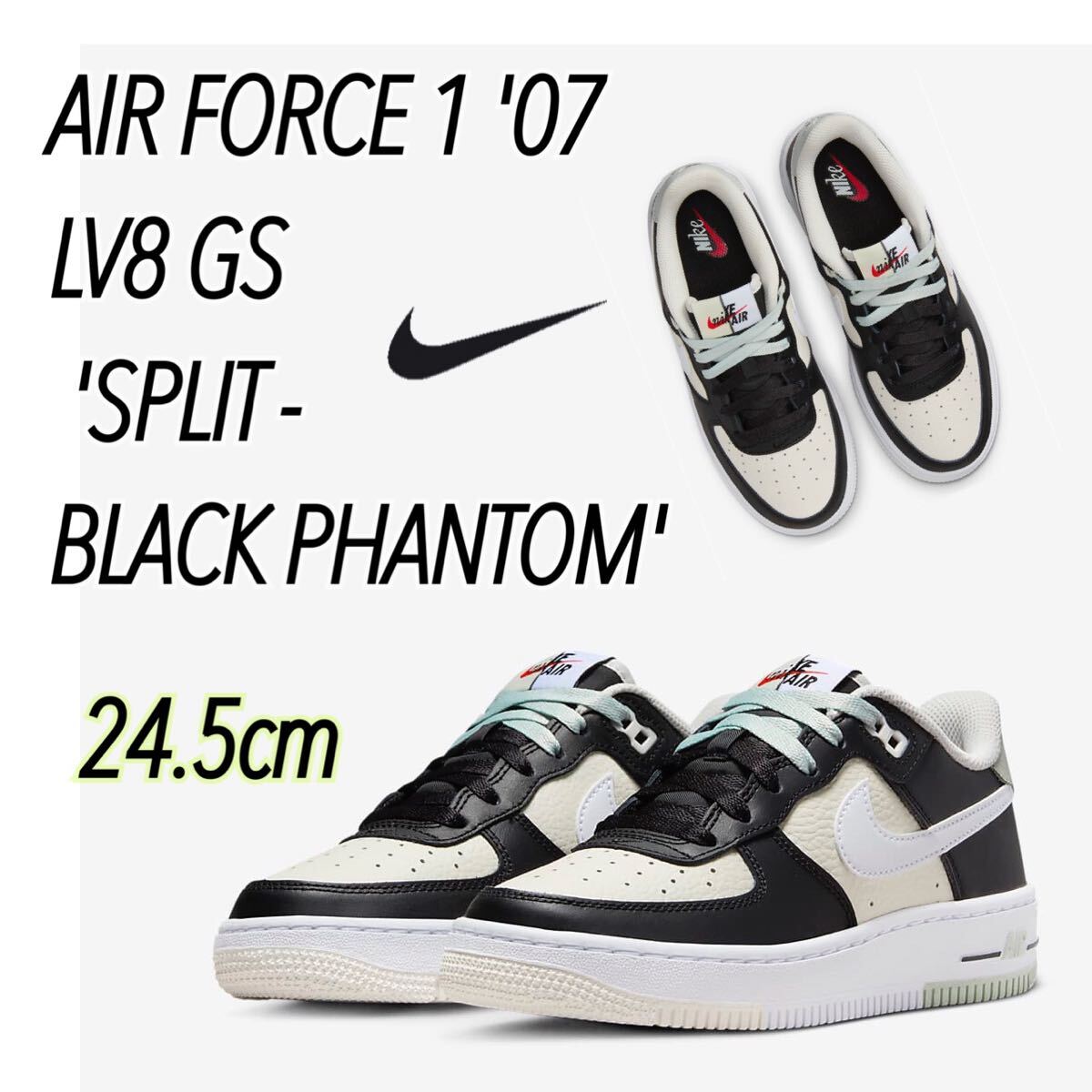 AIR FORCE 1 '07 LV8 GS 'SPLIT - BLACK PHANTOM'ナイキエアフォース1 LV8 (FB9035-002)白黒24.5cm箱無し